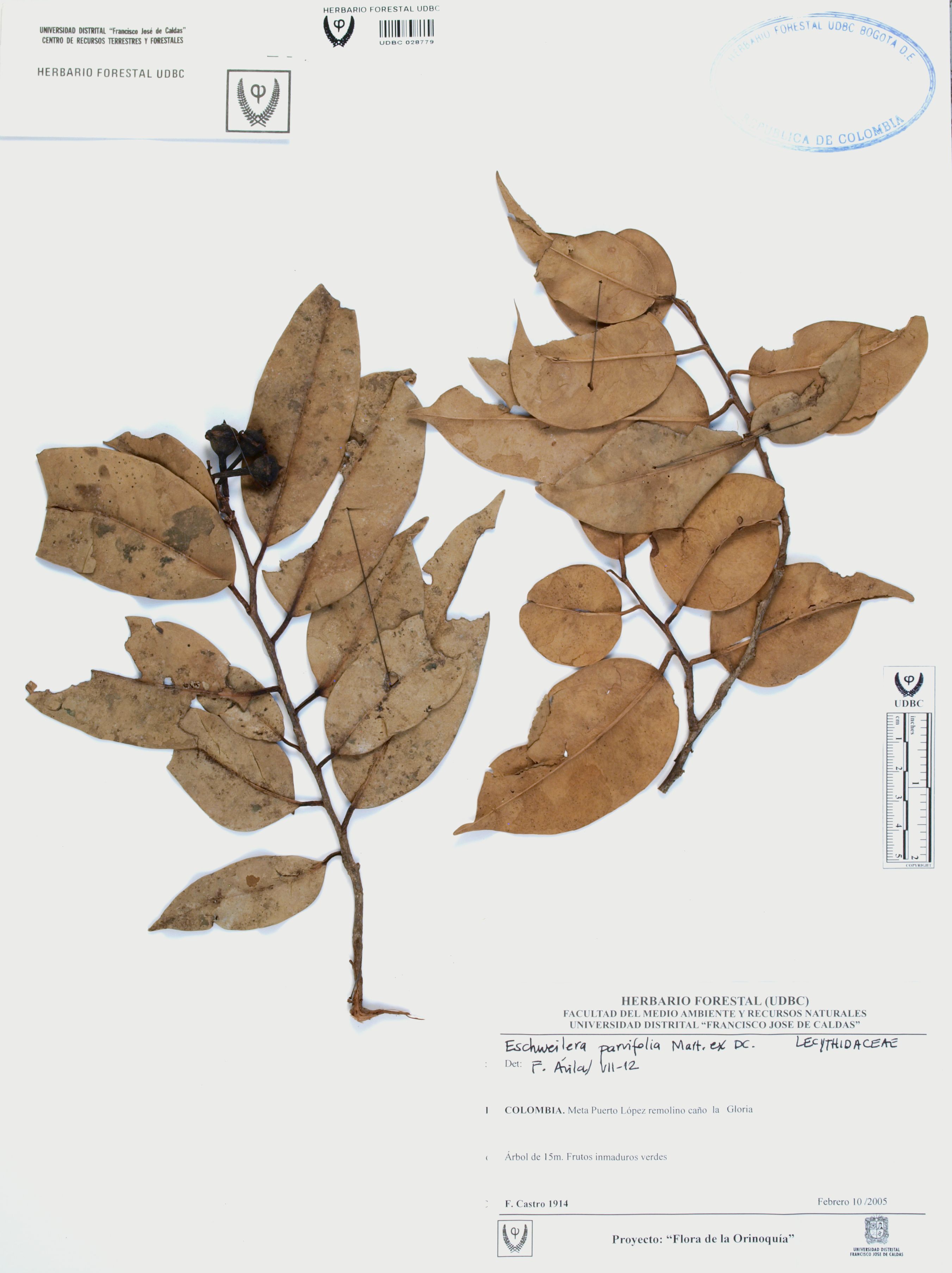 Fotografía del ejemplar Castro, F. 1914, determinado como Eschweilera parvifolia en el año 2012
