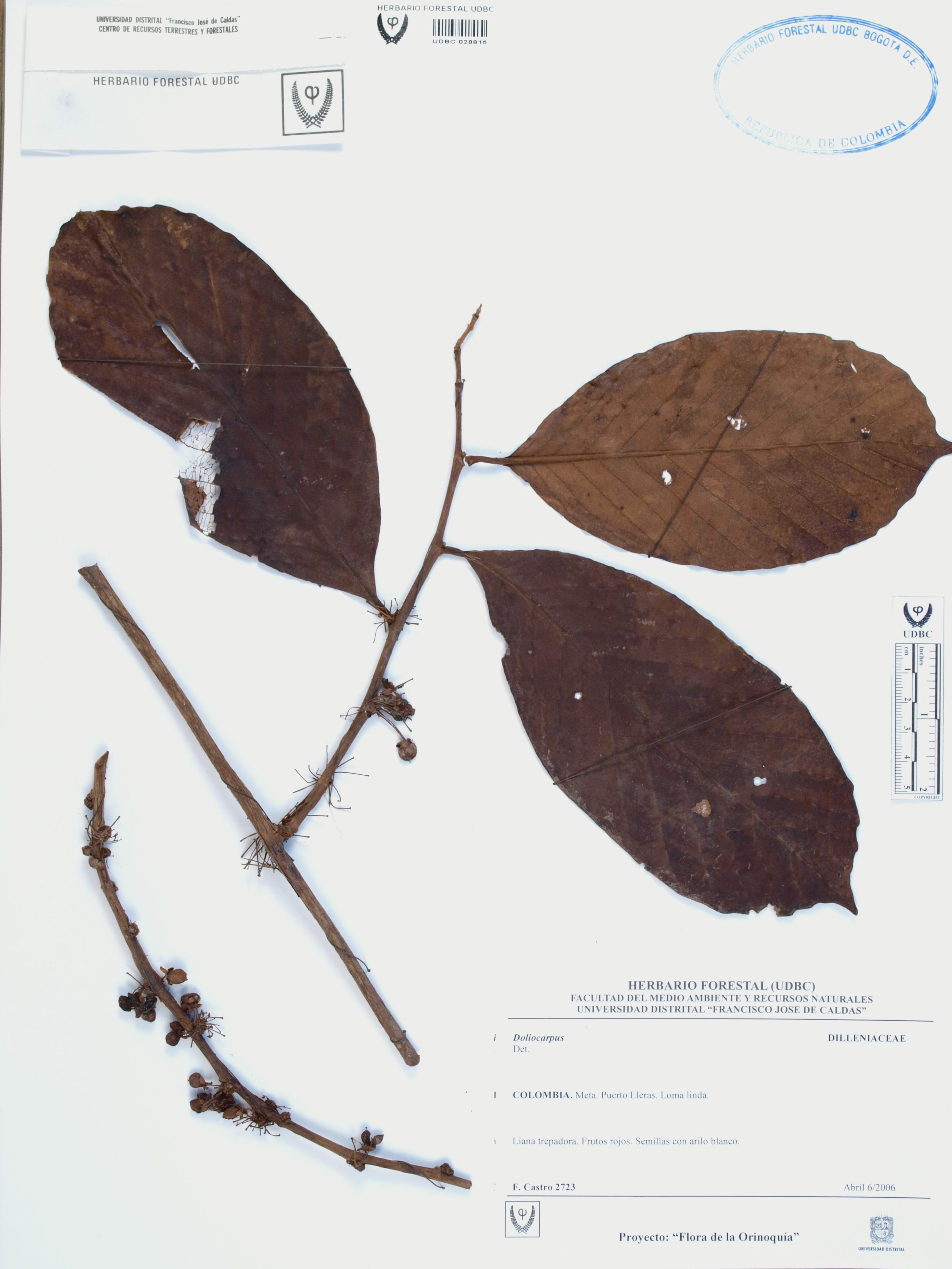 Fotografía del ejemplar Castro, F. 2723, determinado como Doliocarpus sp.