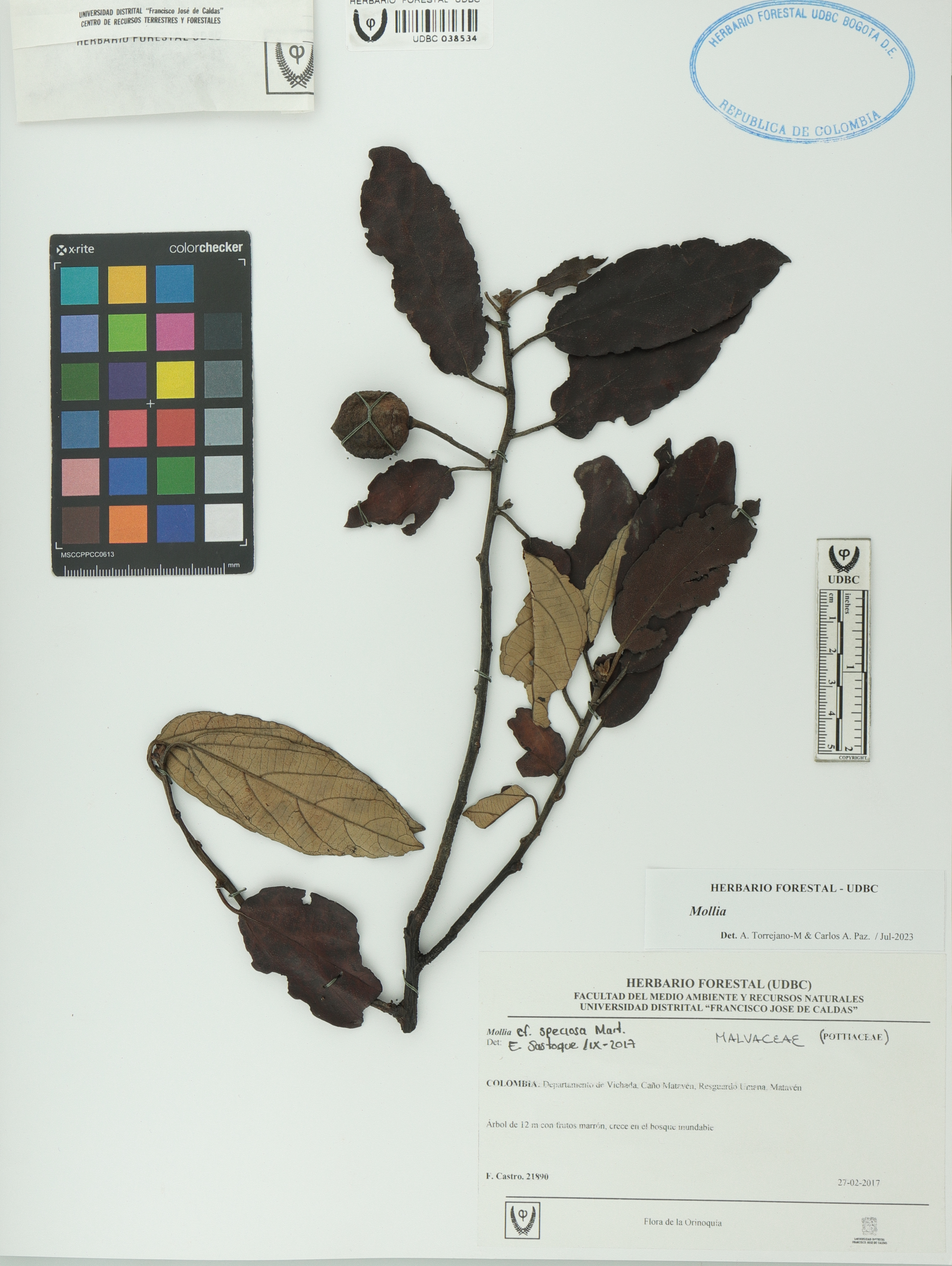Fotografía del ejemplar Castro, F. 21890, determinado como Mollia sp. en el año 2023
