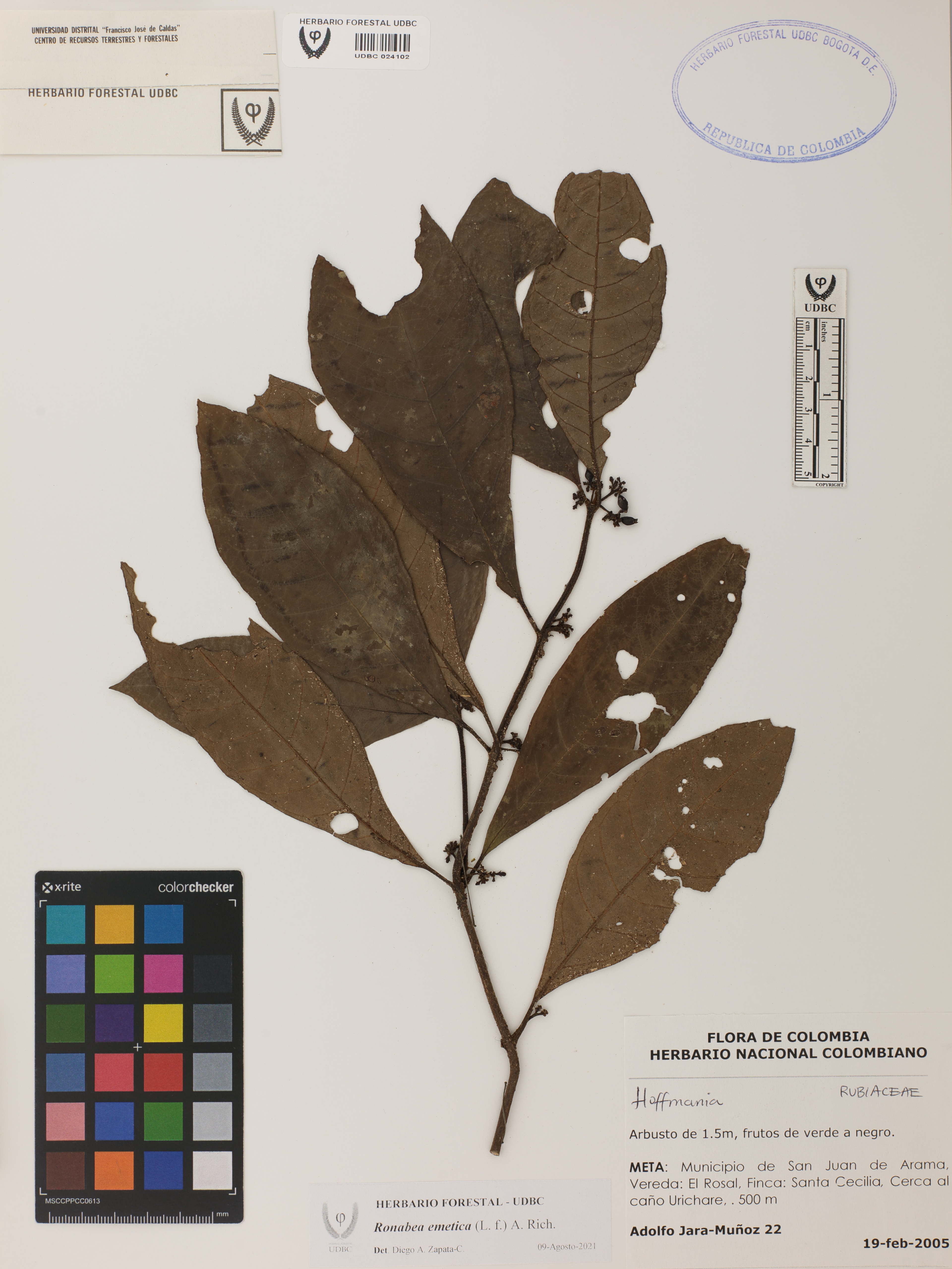 | dc.description | Fotografía del ejemplar Jara, A. 22, determinado como Ronabea emetica en el año 2021 | |