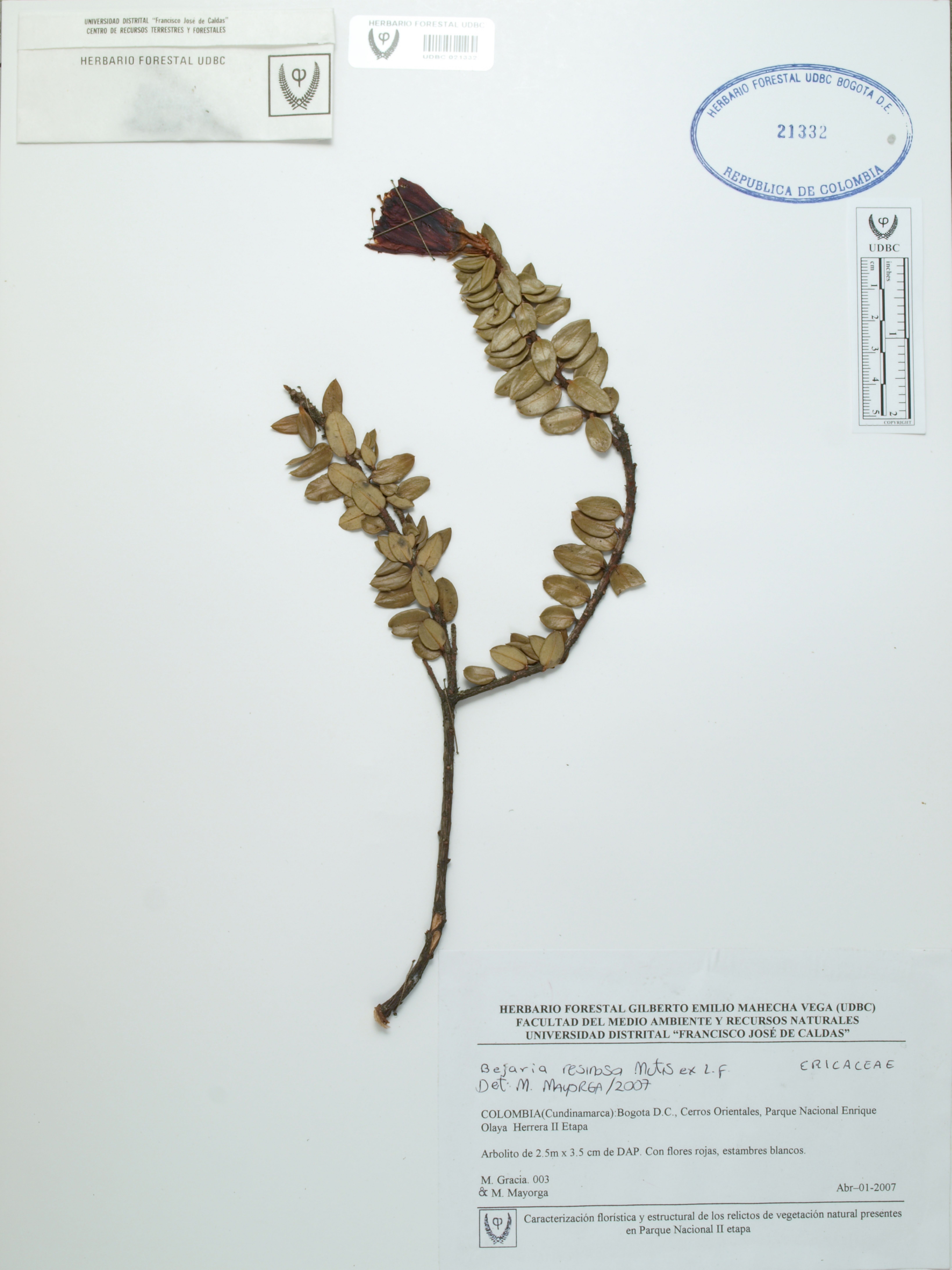 | dc.description | Fotografía del ejemplar Gracia, M. 3, determinado como Bejaria resinosa en el año 2007 | |