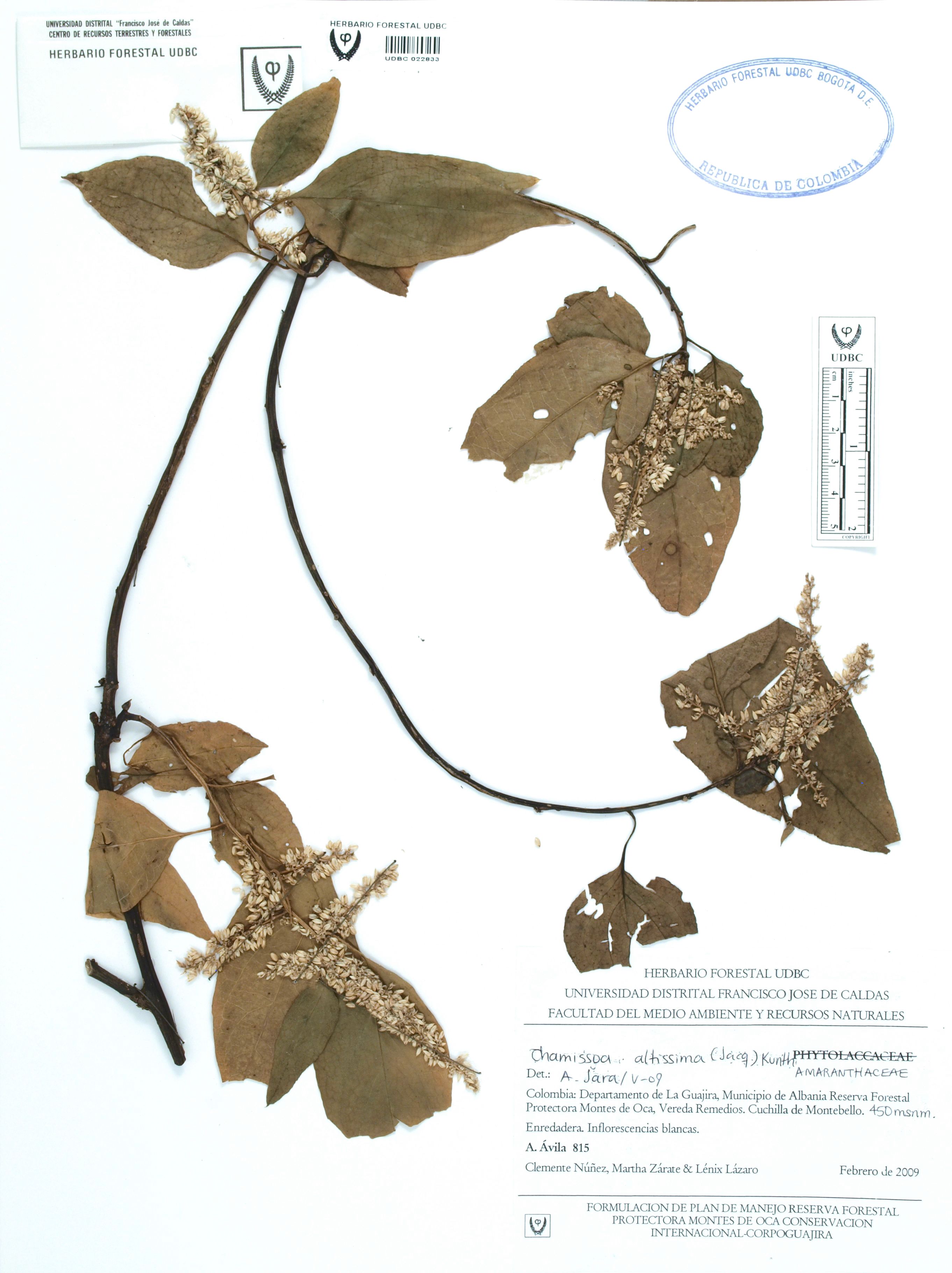 | dc.description | Fotografía del ejemplar Ávila, F. 815, determinado como Chamissoa altissima en el año 2009 | |