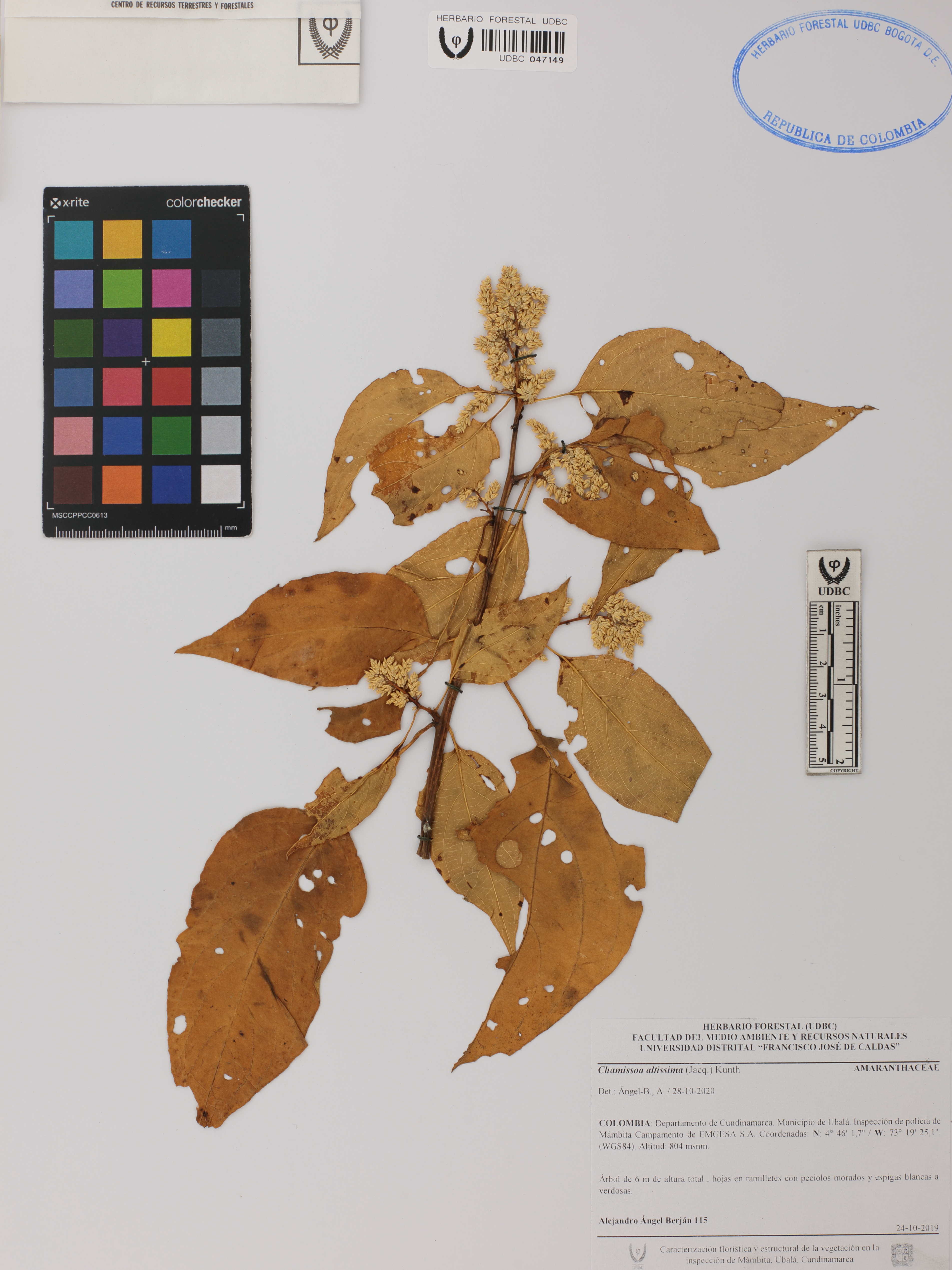 Fotografía del ejemplar Ángel-B., A. 115, determinado como Chamissoa altissima en el año 2020