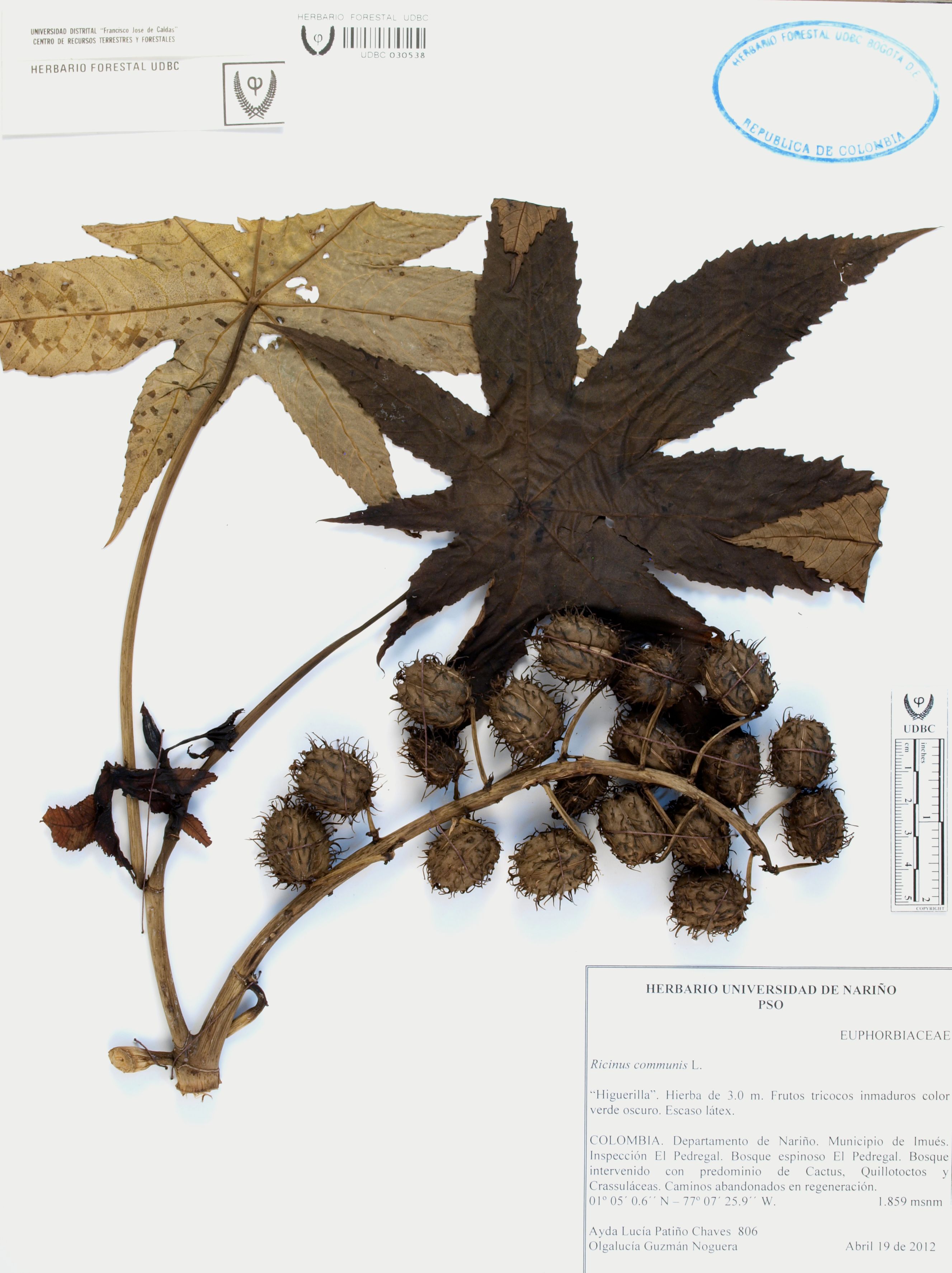 | dc.description | Fotografía del ejemplar Patiño, A. 806, determinado como Ricinus communis | |