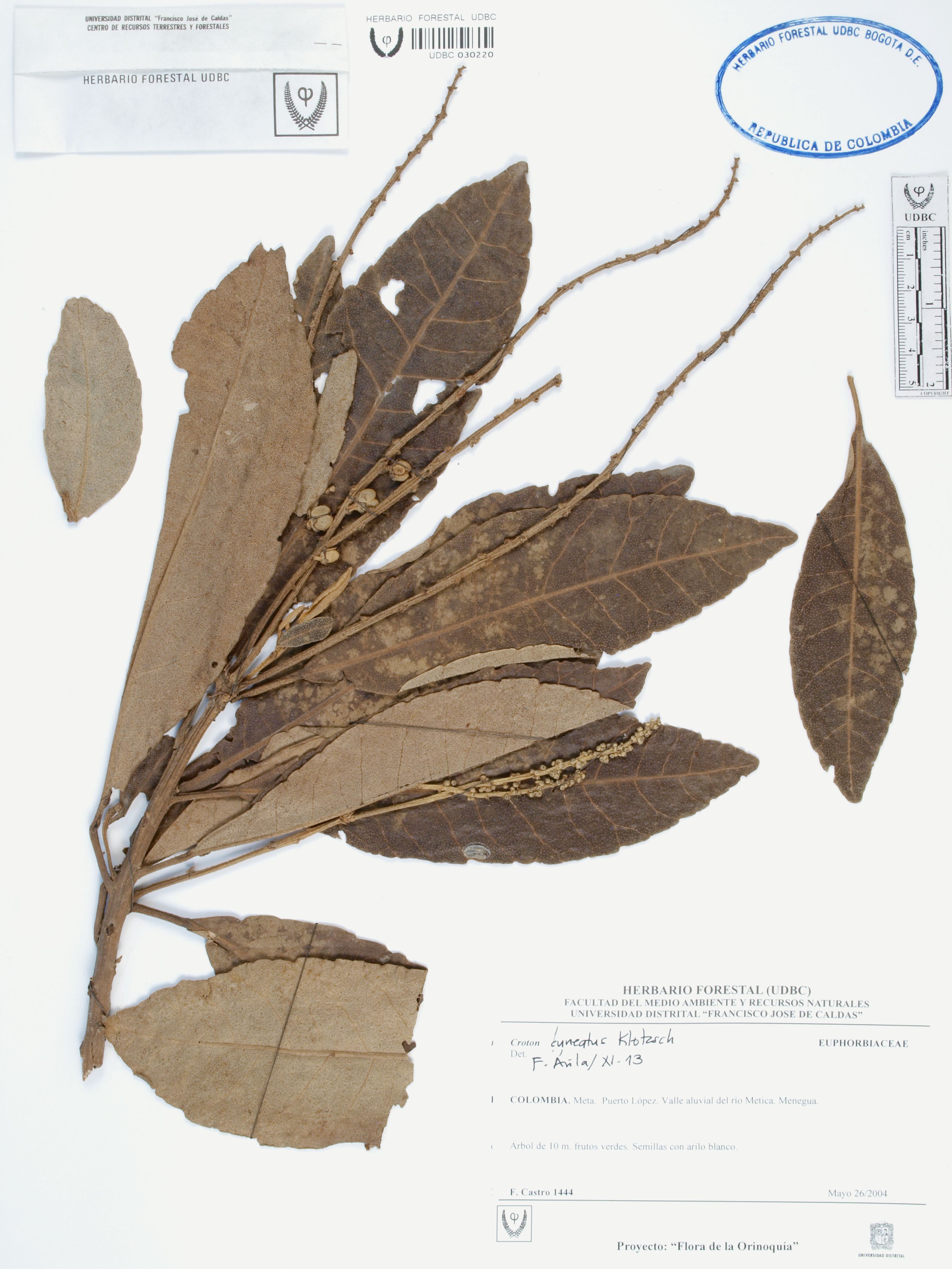 Fotografía del ejemplar Castro, F. 1444, determinado como Croton cuneatus en el año 2013