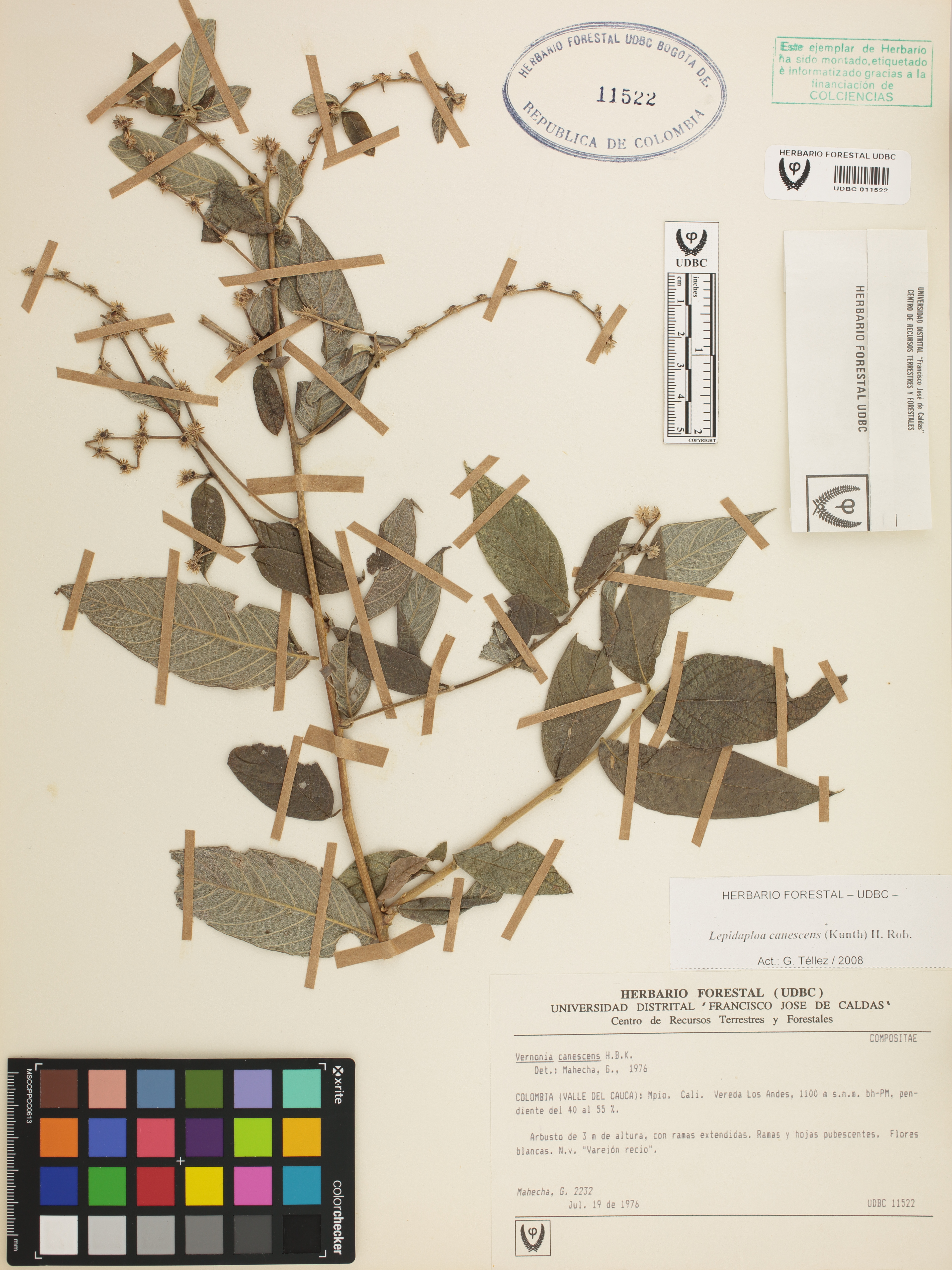 Fotografía del ejemplar Mahecha, G. 2232, determinado como Lepidaploa canescens en el año 2008