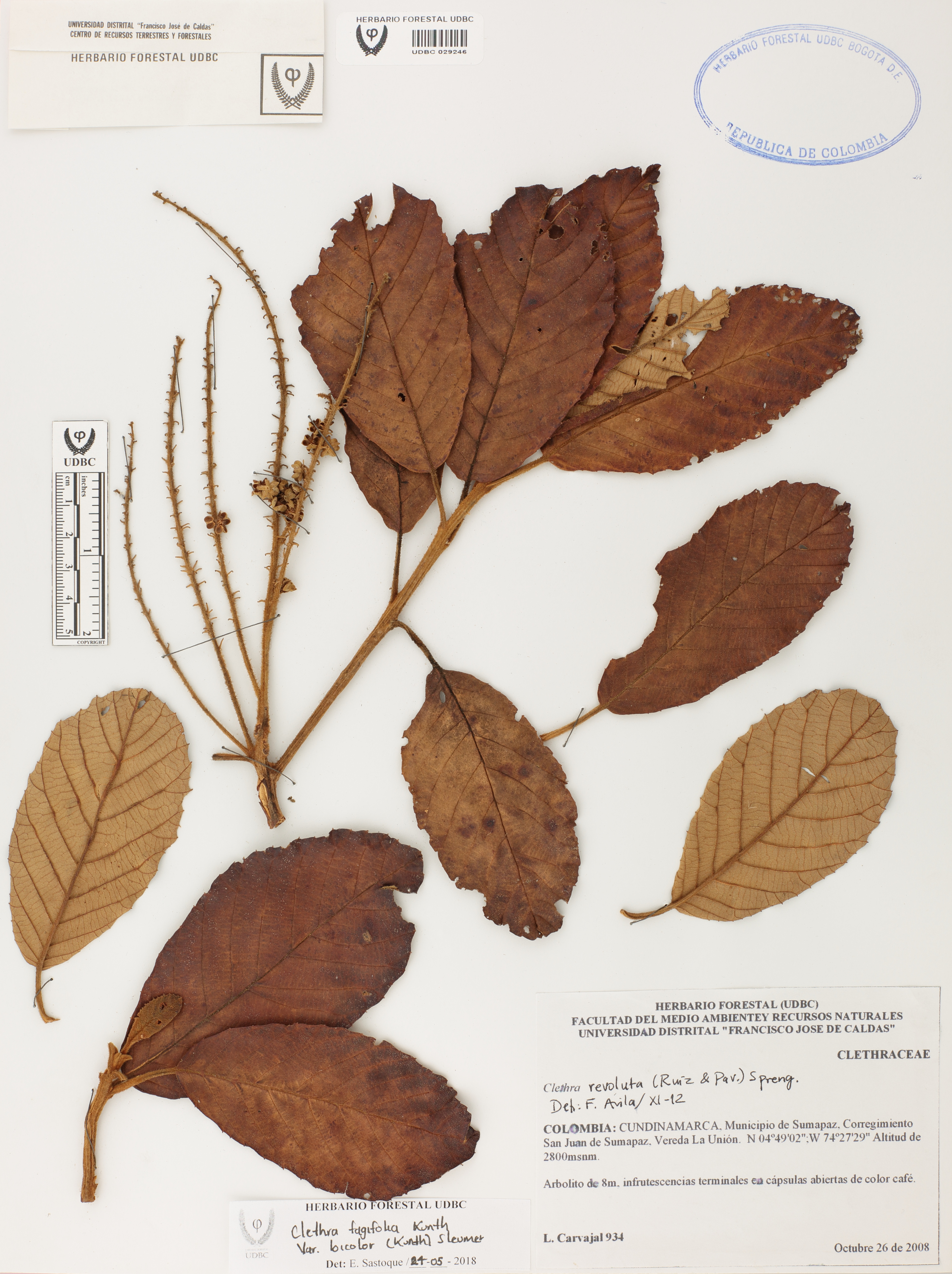 | dc.description | Fotografía del ejemplar Carvajal, L. 934, determinado como Clethra fagifolia en el año 2018 | |
