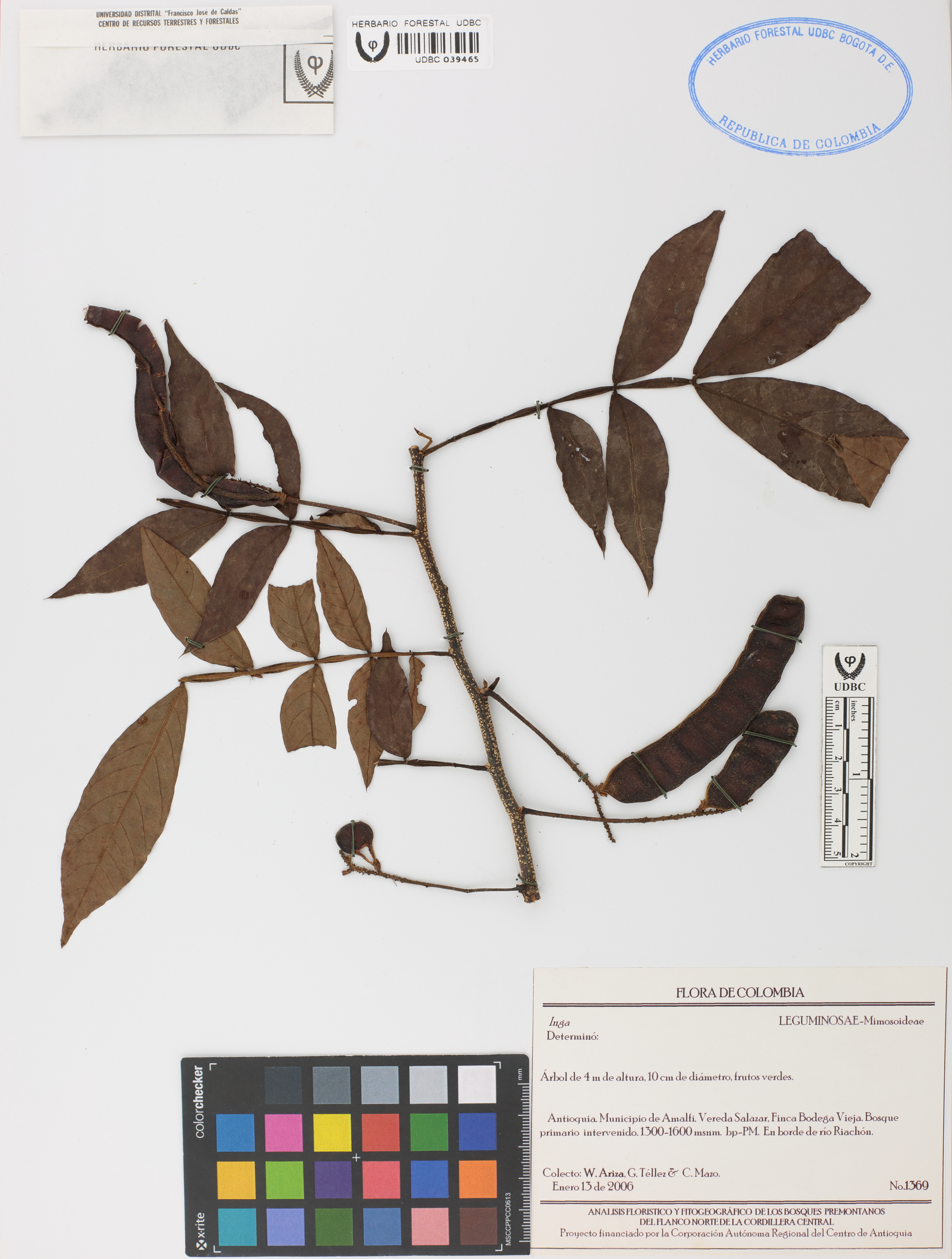 Fotografía del ejemplar Ariza, W. 1369, determinado como Inga sp.
