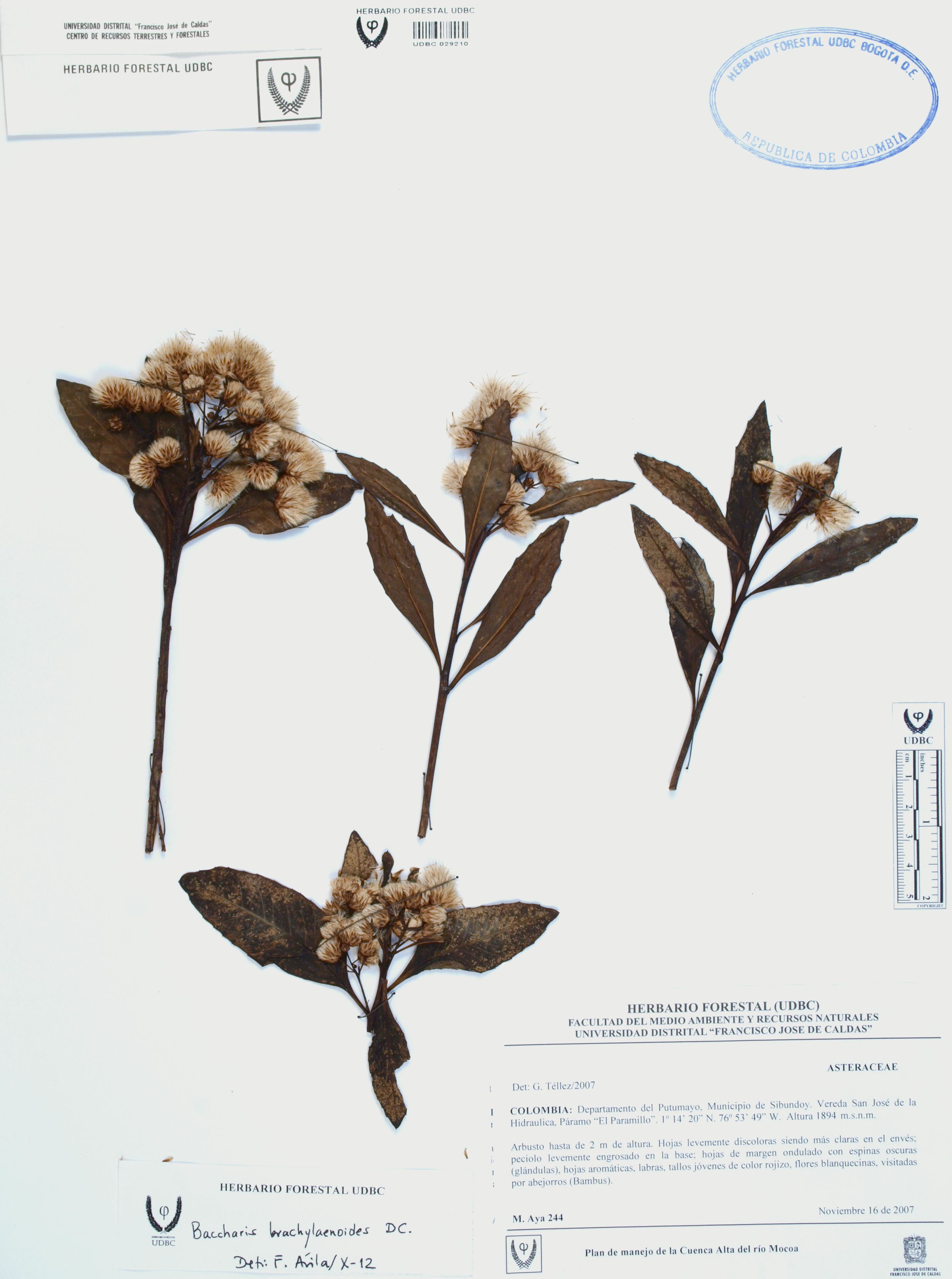 Fotografía del ejemplar Aya, M. 244, determinado como Baccharis brachylaenoides en el año 2012