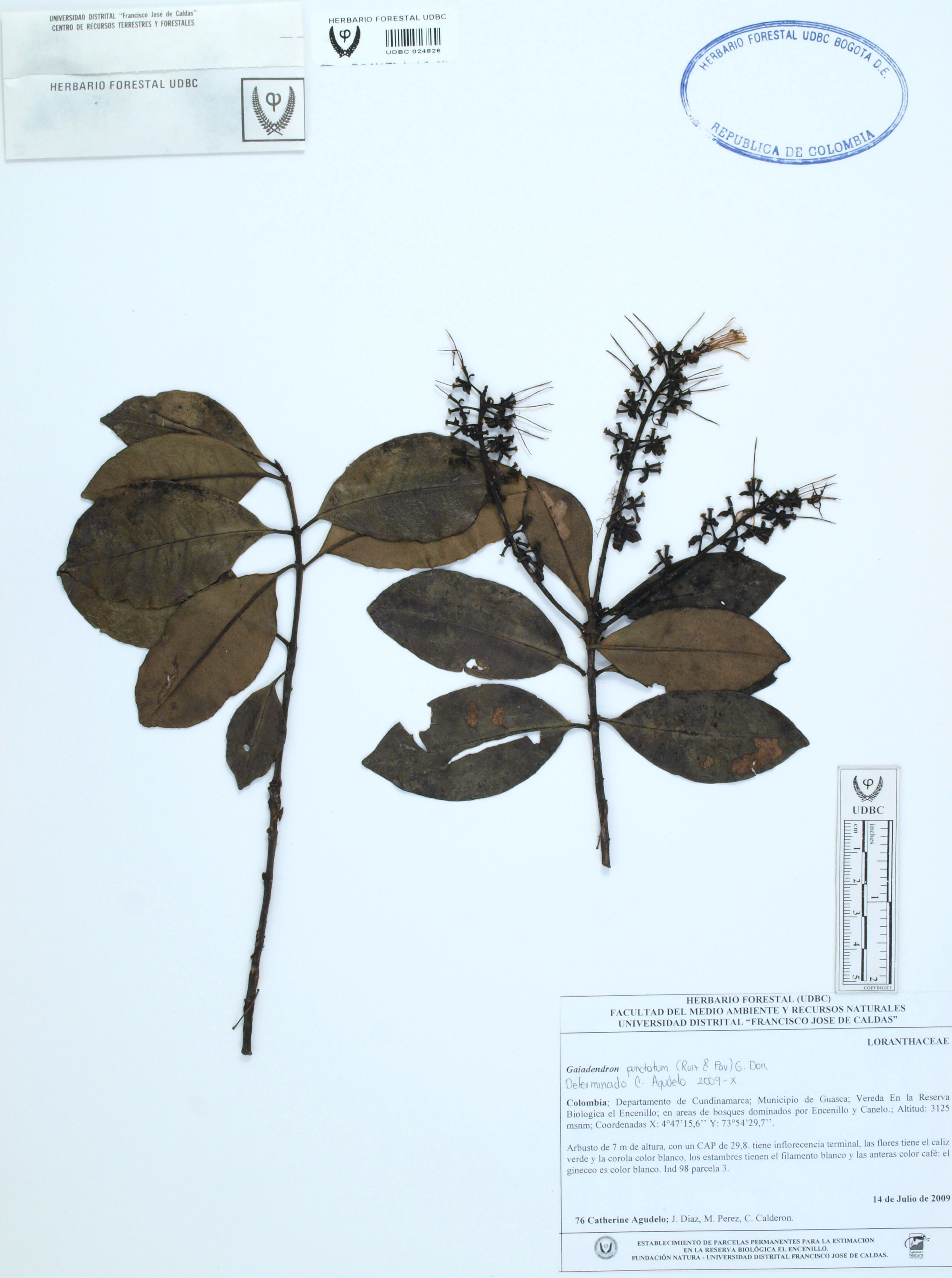 | dc.description | Fotografía del ejemplar Agudelo, C. 76, determinado como Gaiadendron punctatum en el año 2009 | |
