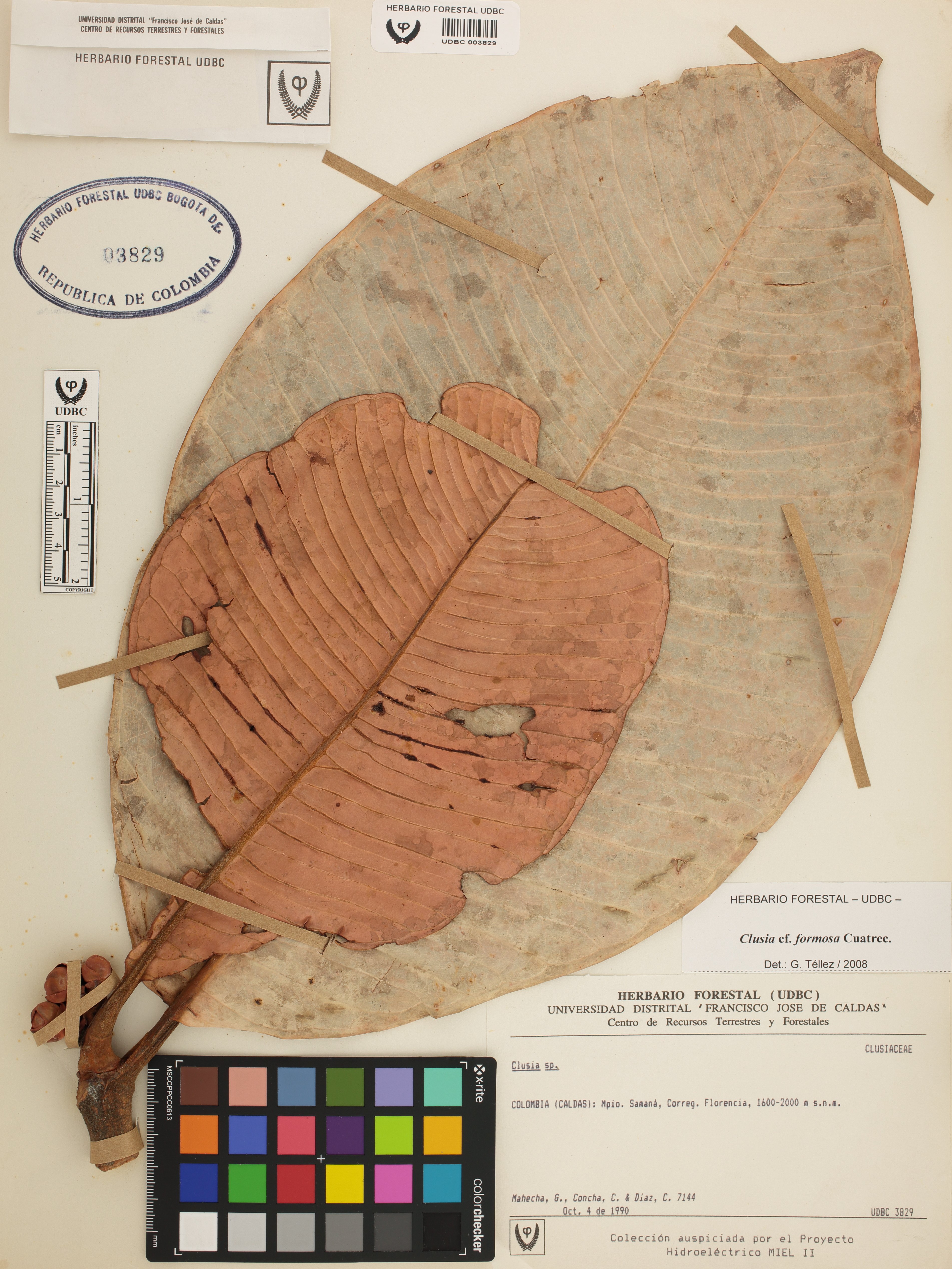 Fotografía del ejemplar Mahecha, G. 7144, determinado como Clusia formosa en el año 2008