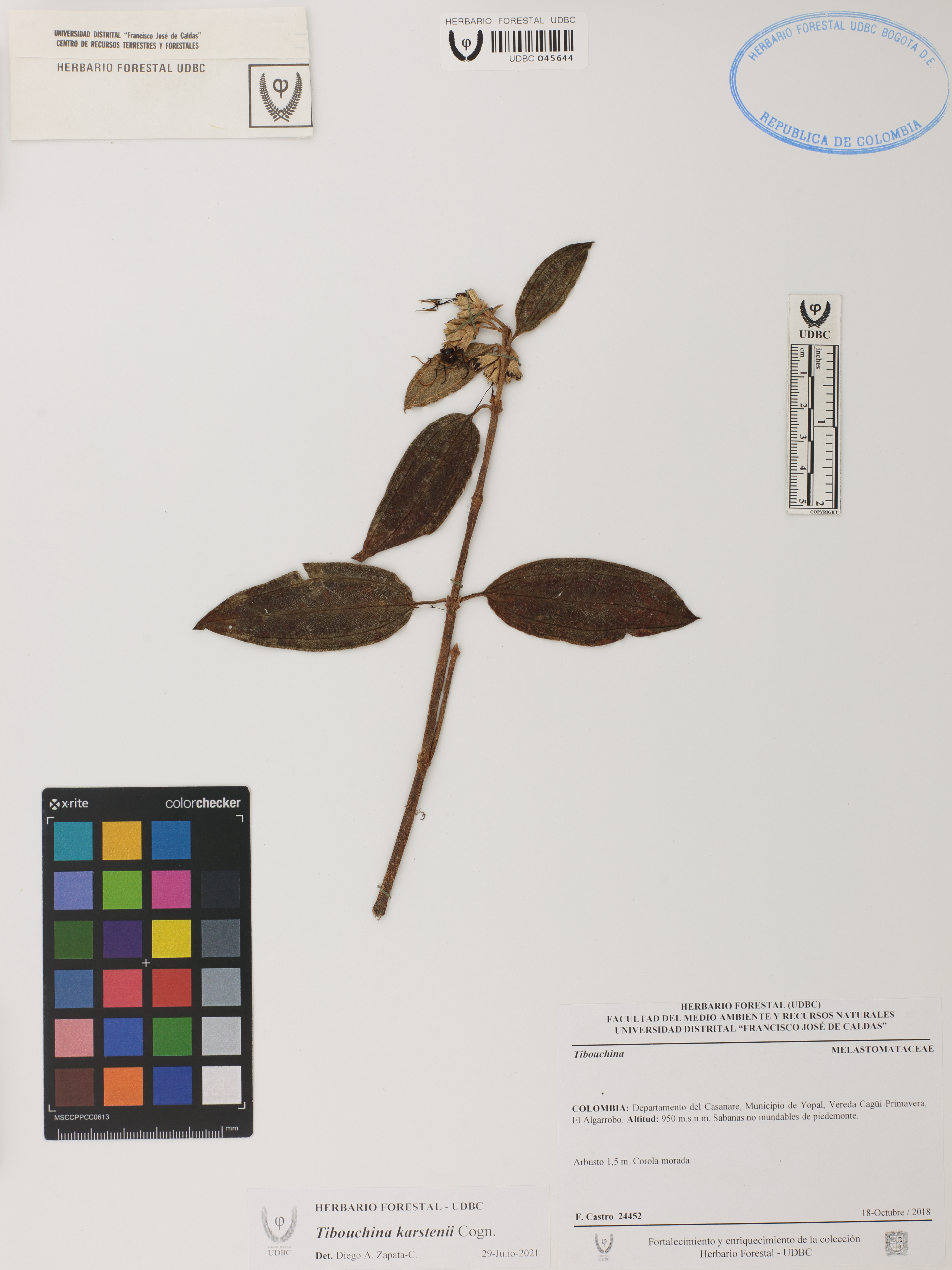Fotografía del ejemplar Castro, F. 24452, determinado como Tibouchina karstenii en el año 2021