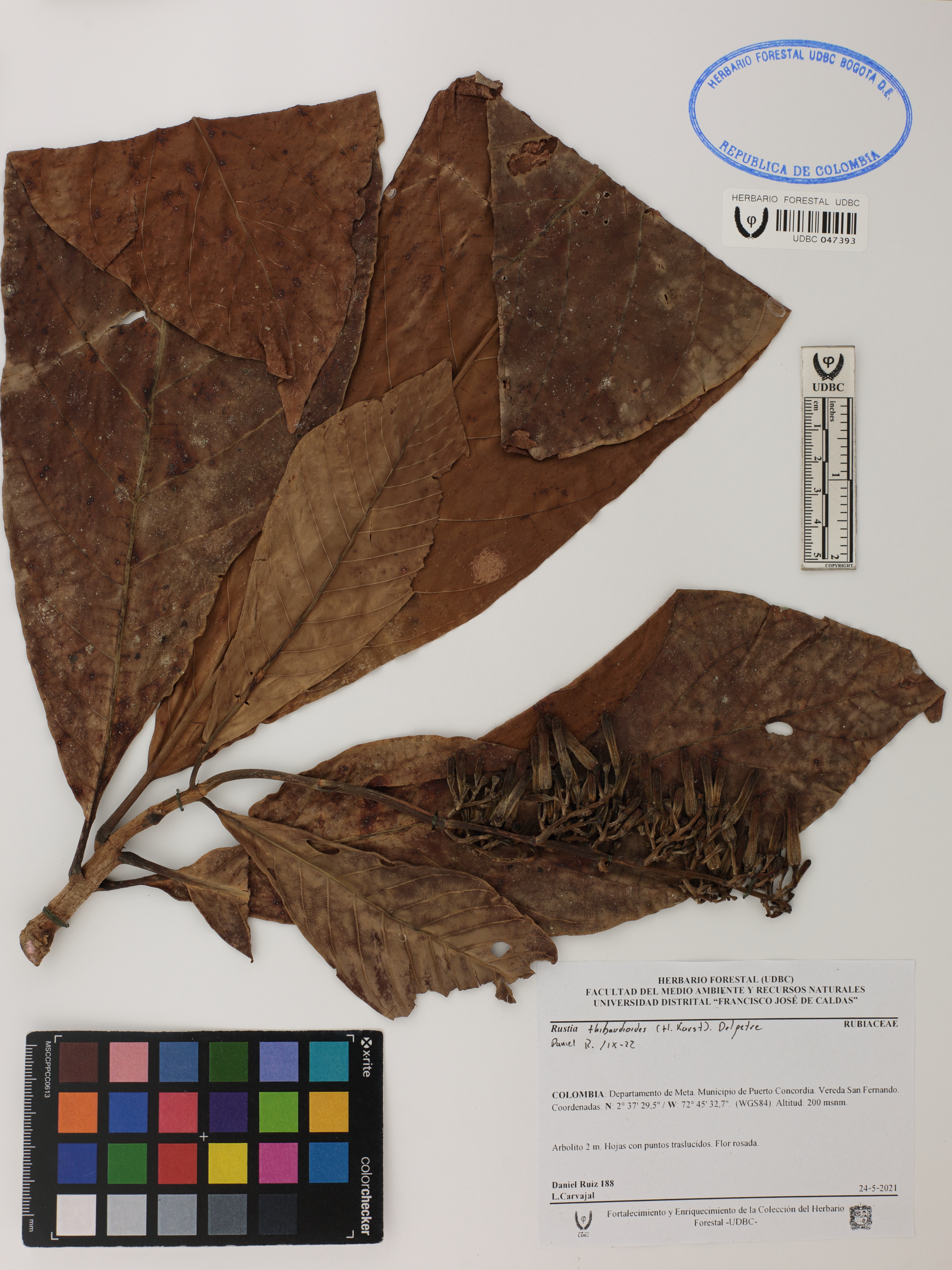 | dc.description | Fotografía del ejemplar Ruiz, Daniel 188, determinado como Rustia thibaudioides en el año 2022 | |