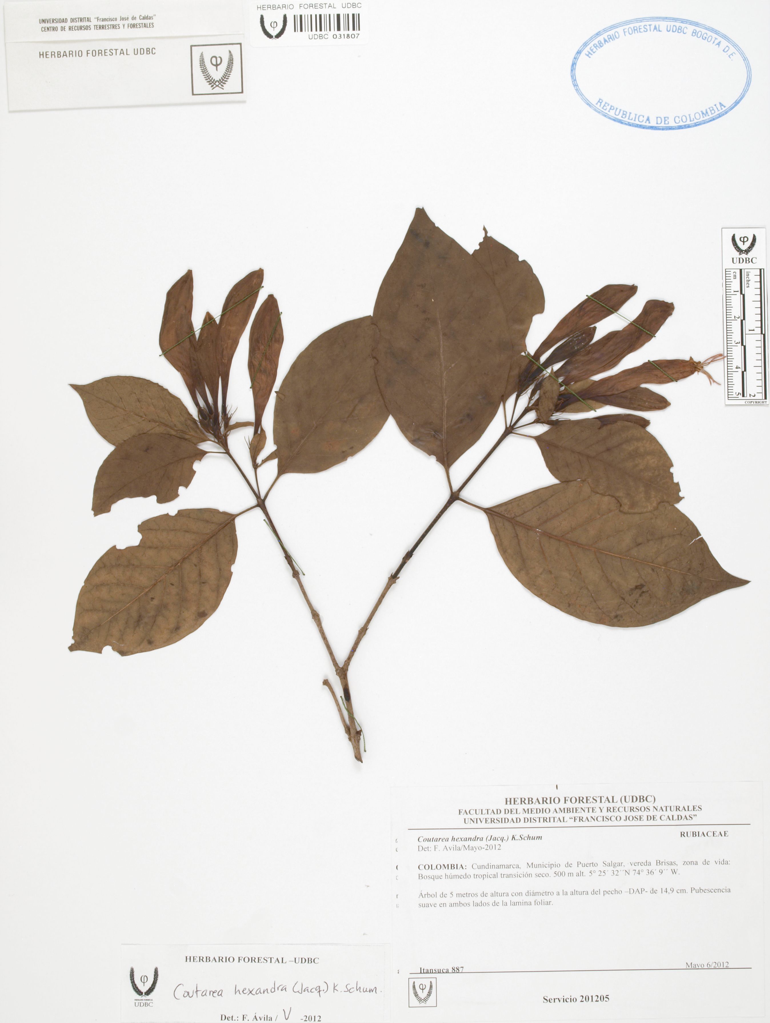 | dc.description | Fotografía del ejemplar SD 887, determinado como Coutarea hexandra en el año 2012 | |