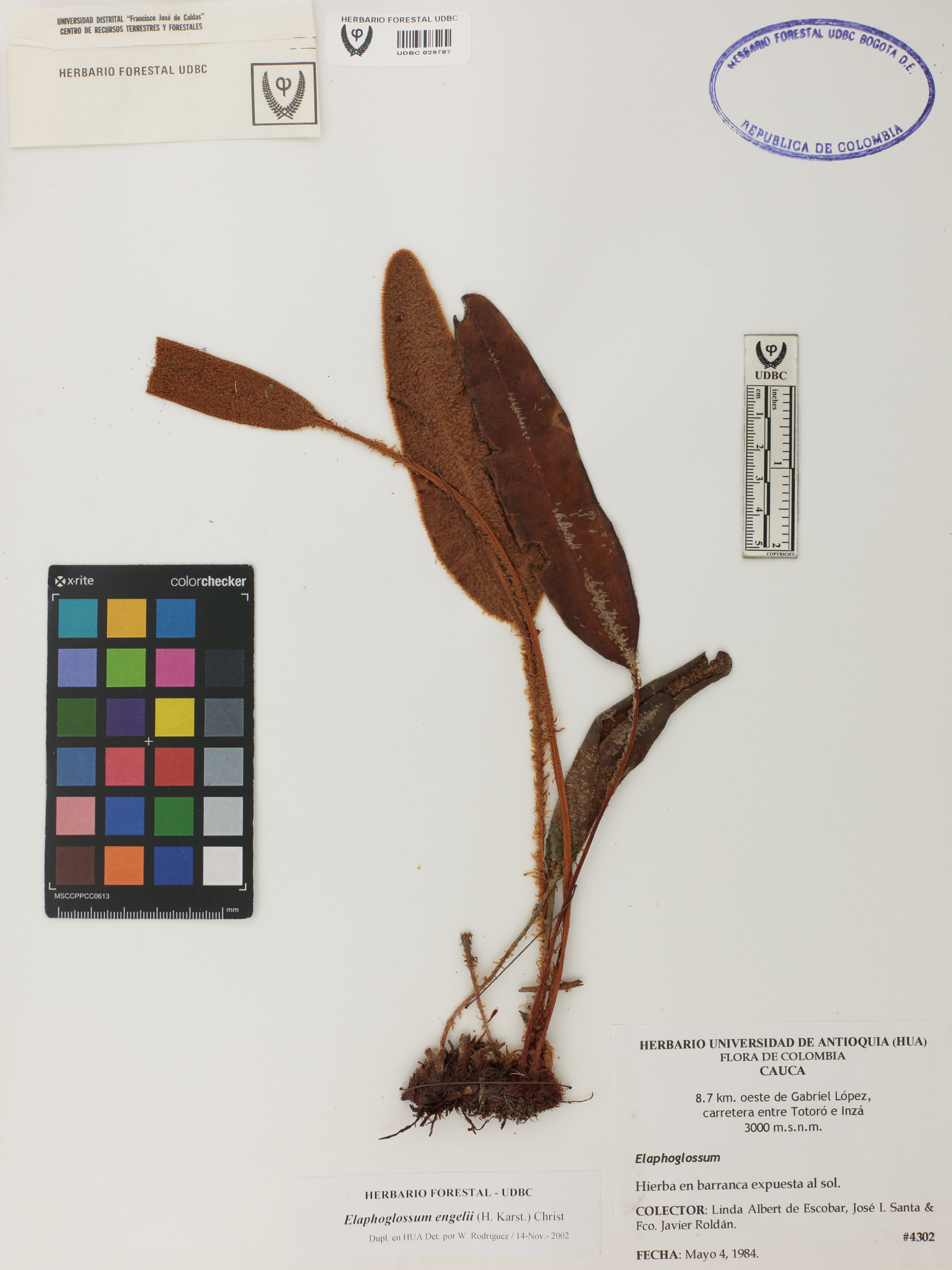 | dc.description | Fotografía del ejemplar Albert de E., L. 4302, determinado como Elaphoglossum engelii en el año 2002 | |