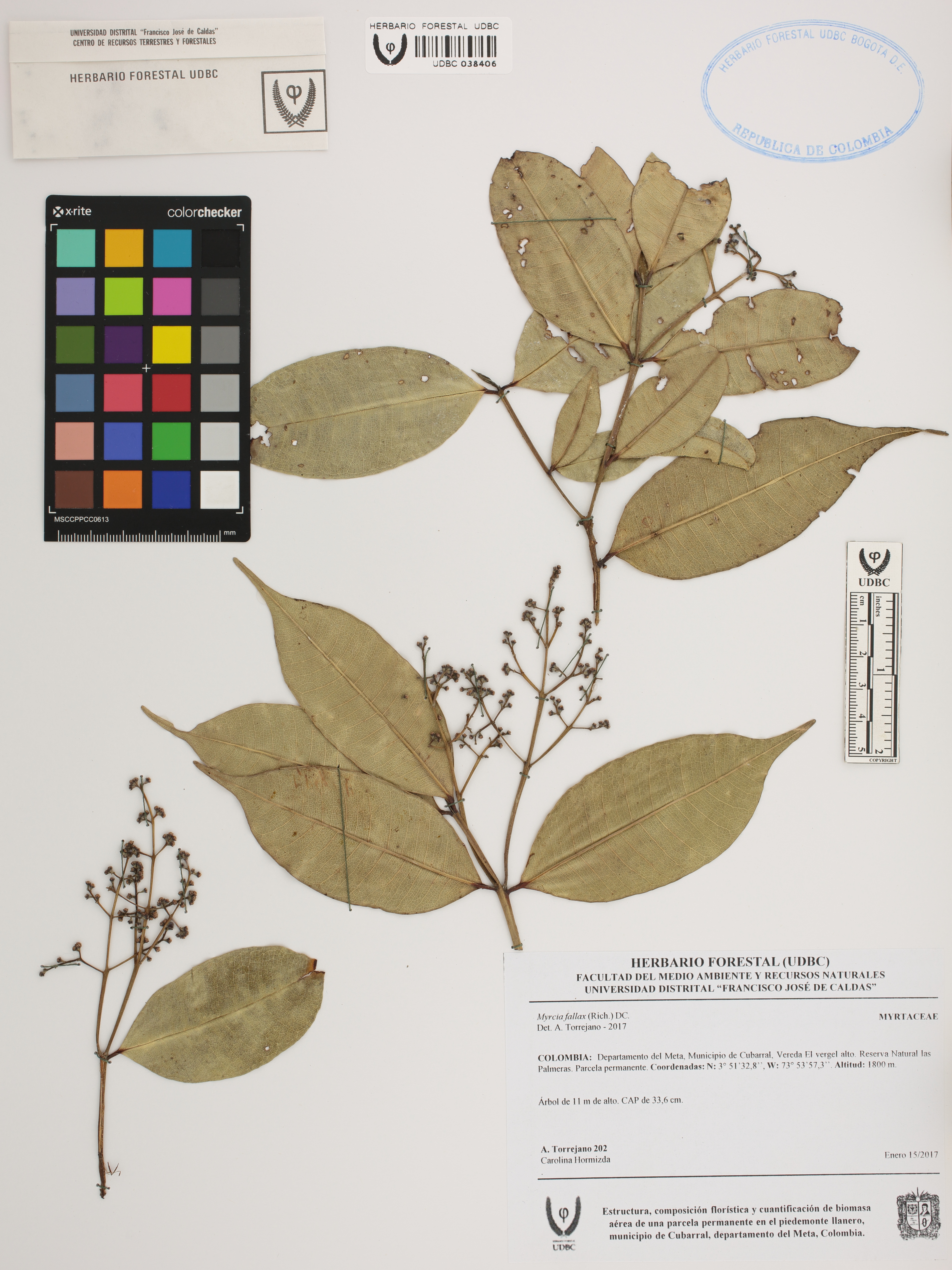 Fotografía del ejemplar Torrejano, A. 202, determinado como Myrcia fallax en el año 2017