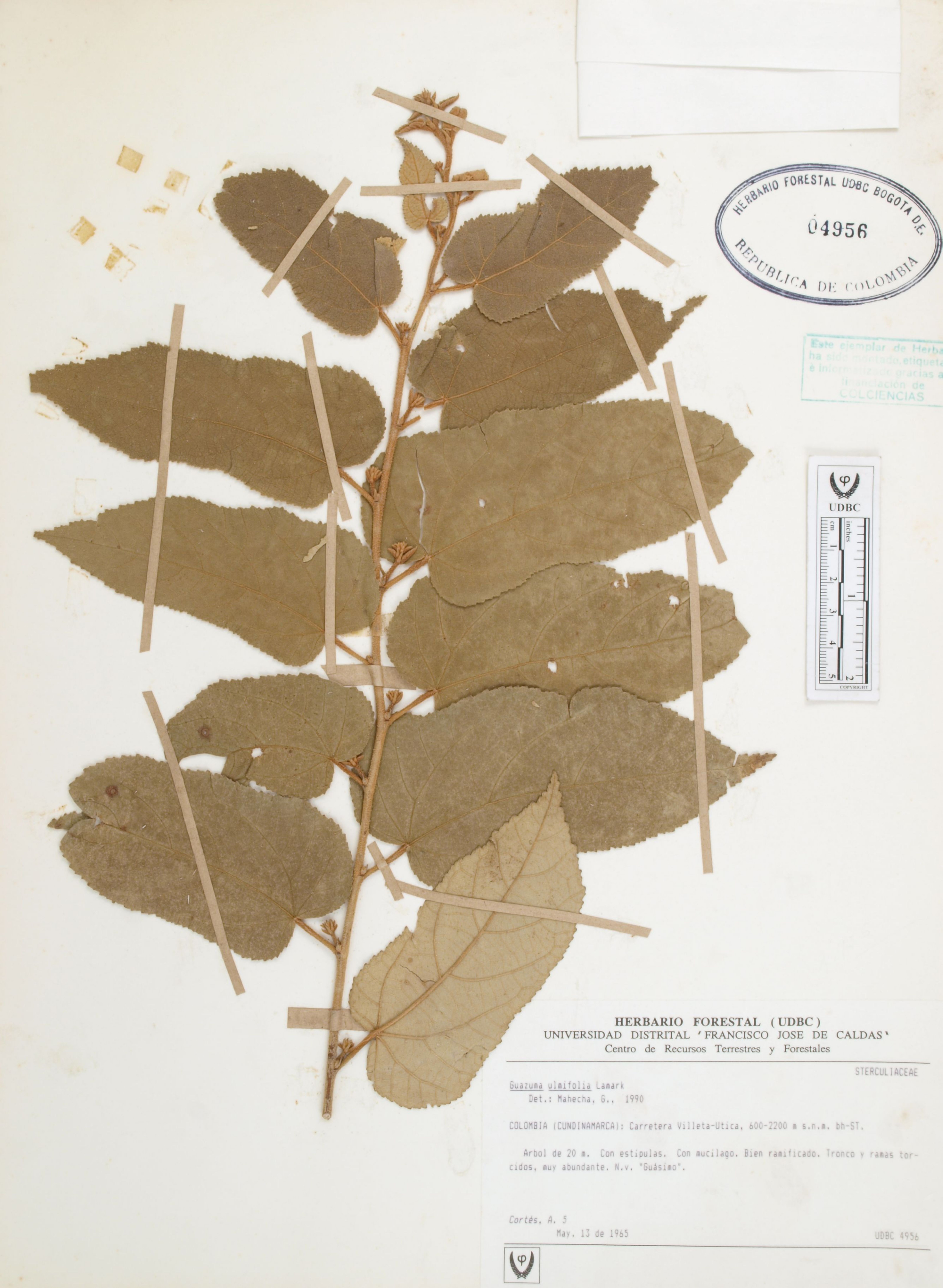 | dc.description | Fotografía del ejemplar Cortés, A. 5, determinado como Guazuma ulmifolia en el año 1990 | |
