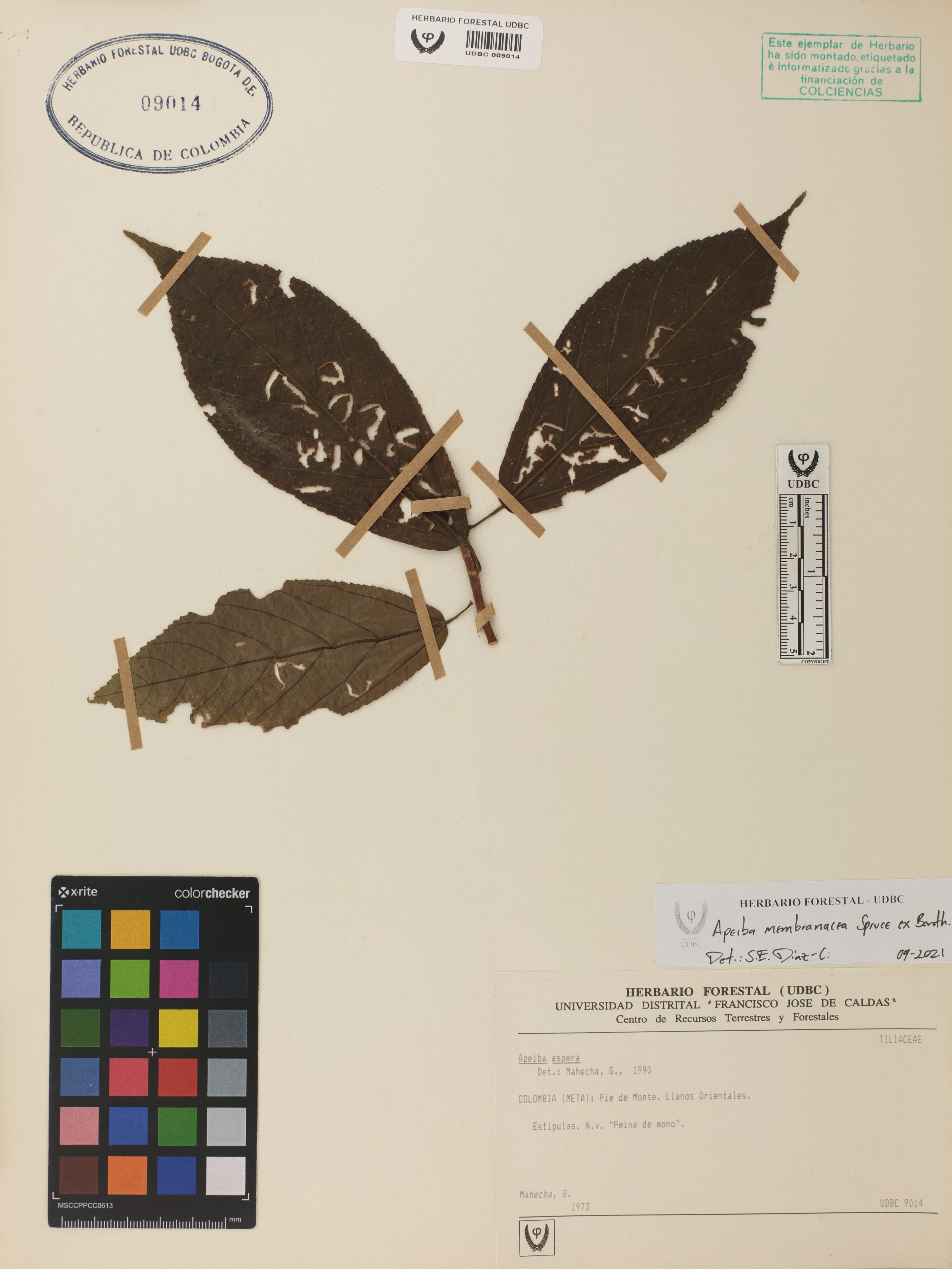 Fotografía del ejemplar Mahecha, G., determinado como Apeiba membranacea en el año 2021