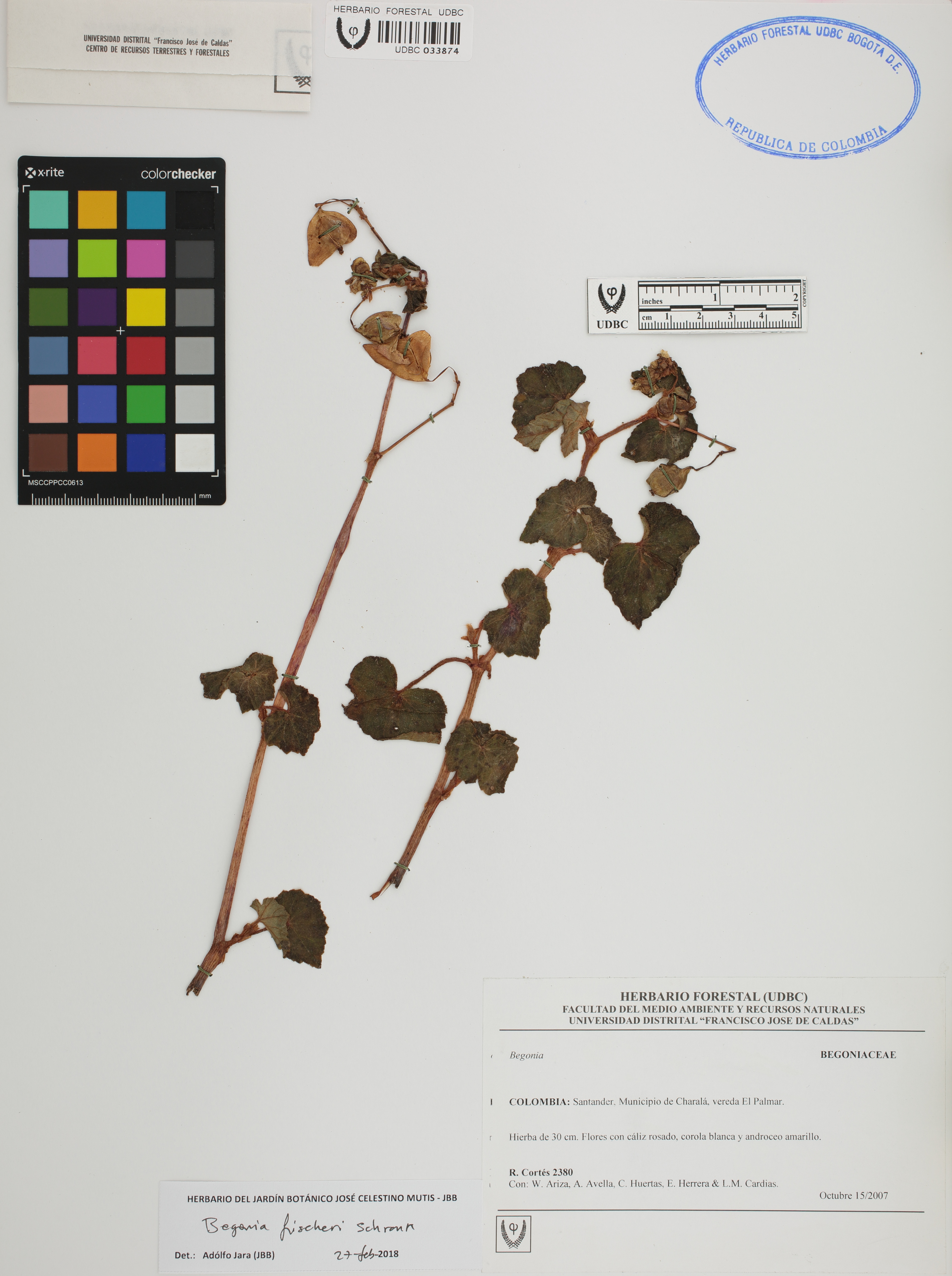 Fotografía del ejemplar Cortés, R. 2380, determinado como Begonia fischeri en el año 2018