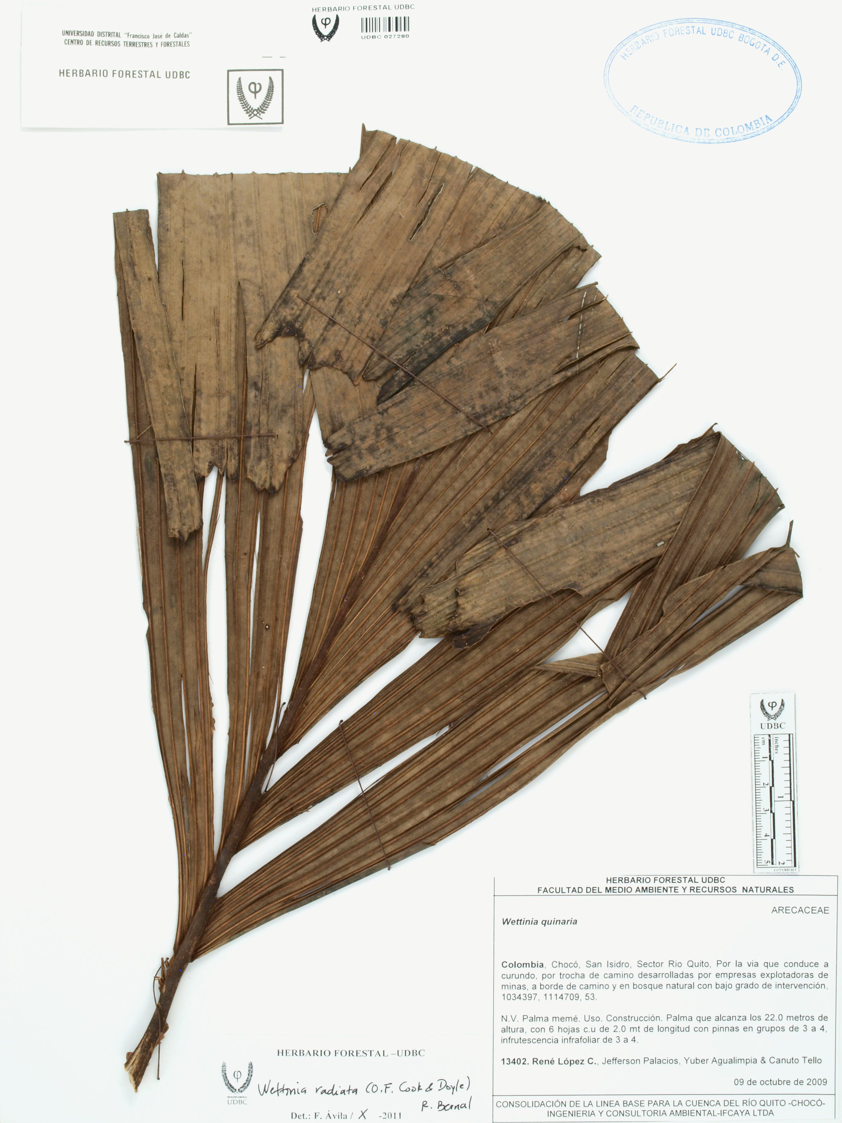 | dc.description | Fotografía del ejemplar López, R. 13402, determinado como Wettinia radiata en el año 2011 | |