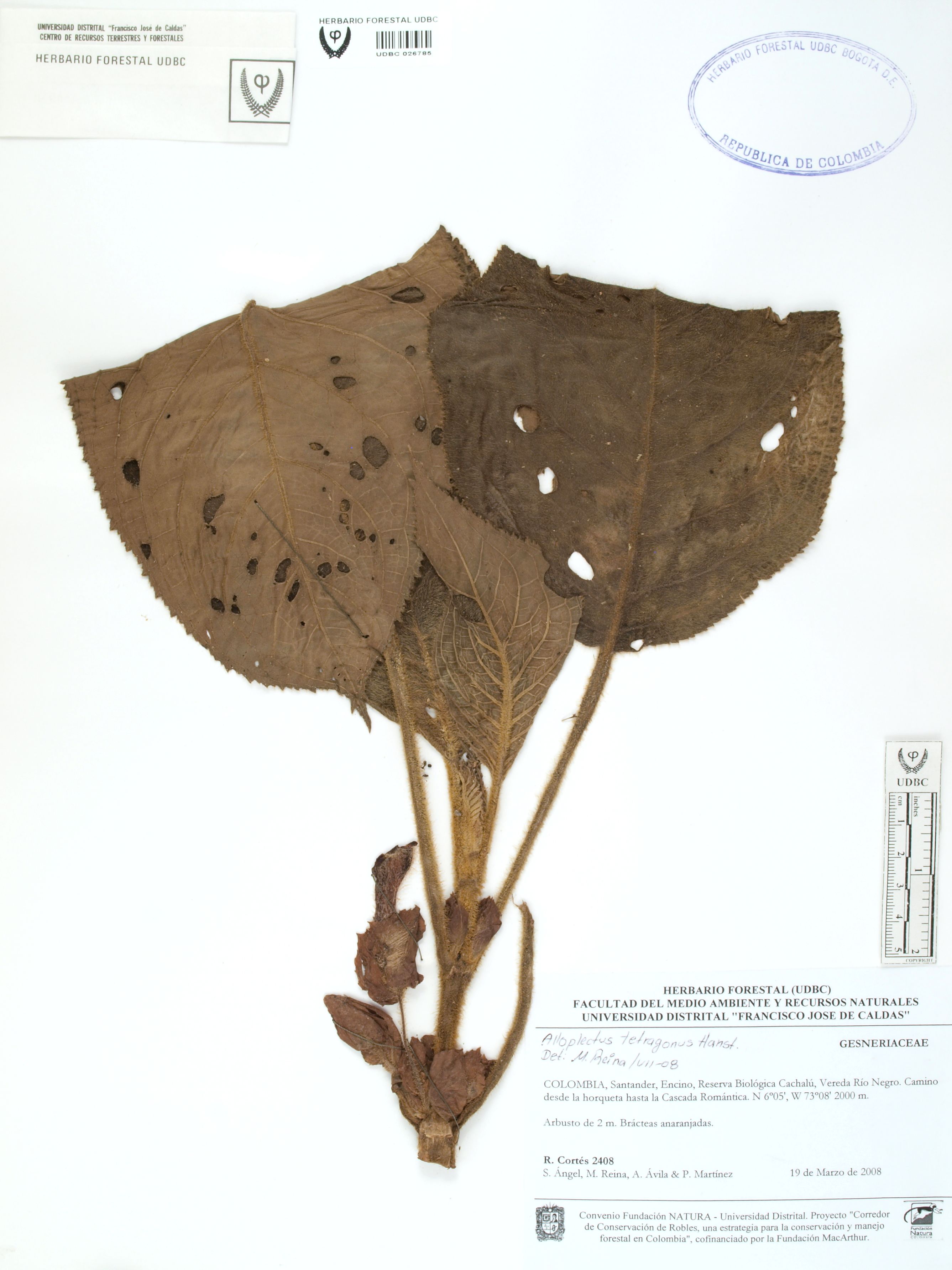 Fotografía del ejemplar Cortés-B., R. 2408, determinado como Glossoloma tetragonum en el año 2008