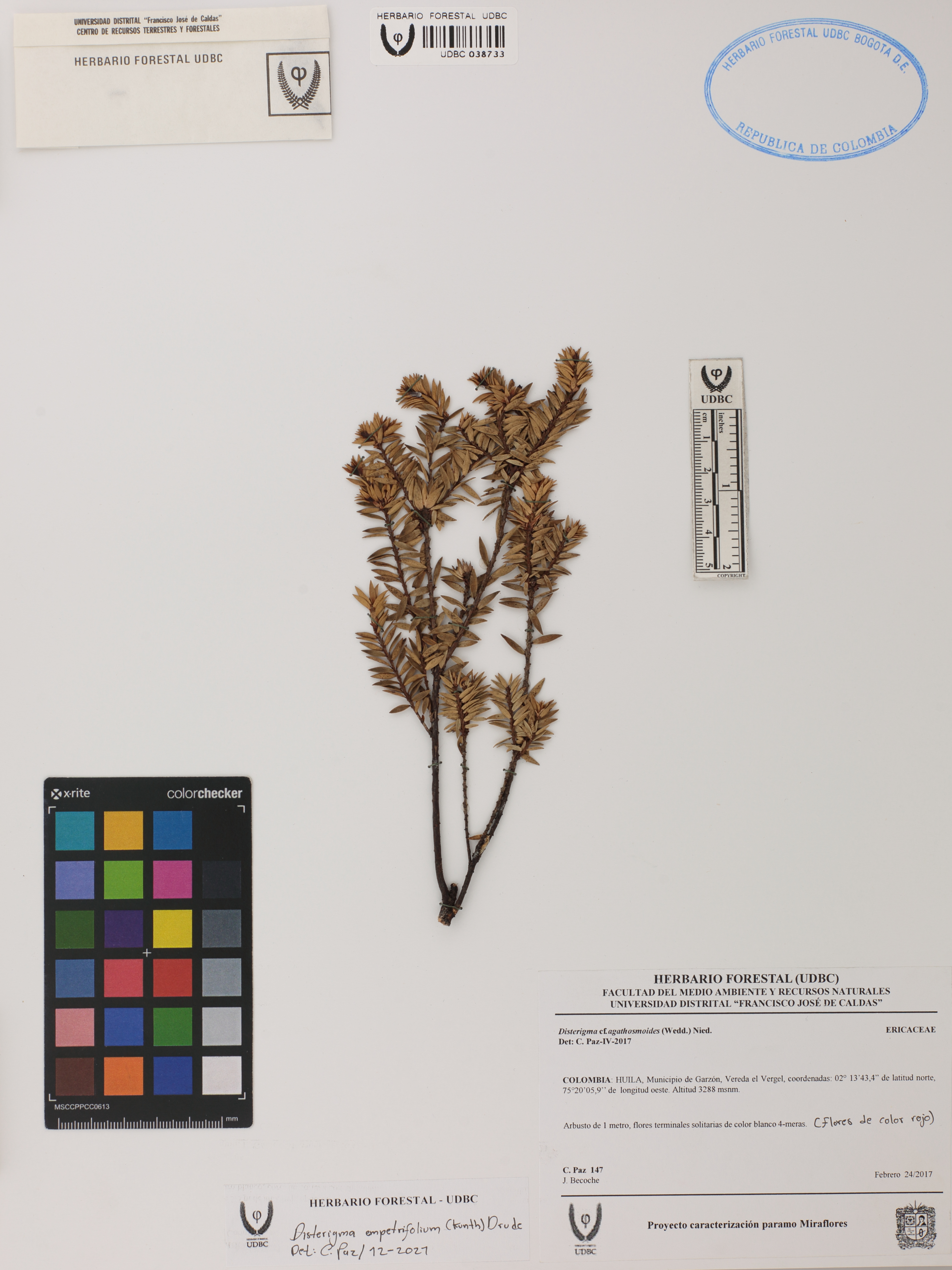 Fotografía del ejemplar Paz, C. 147, determinado como Disterigma empetrifolium en el año 2021