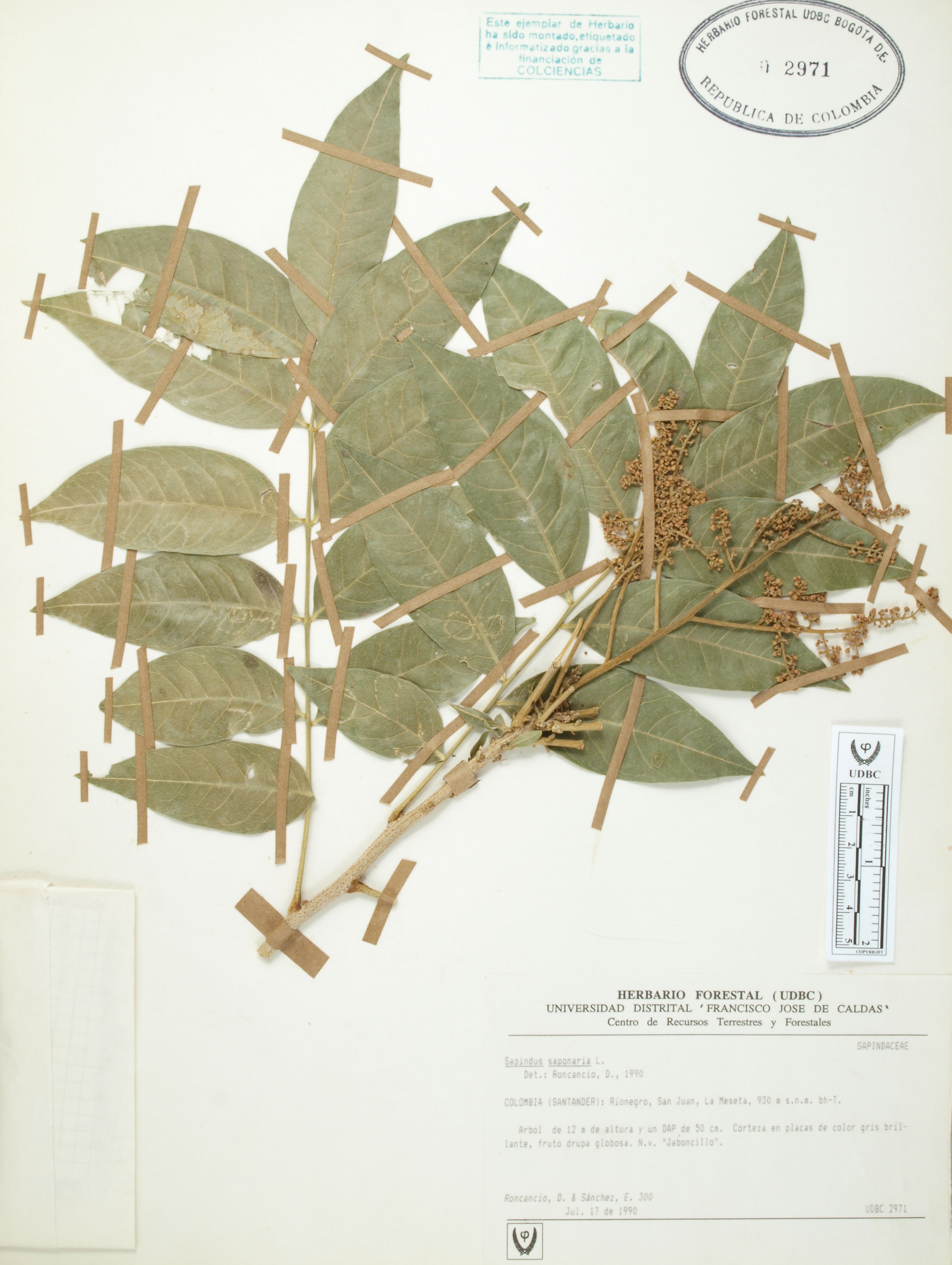 Fotografía del ejemplar Roncancio, D. 300, determinado como Sapindus saponaria en el año 1990