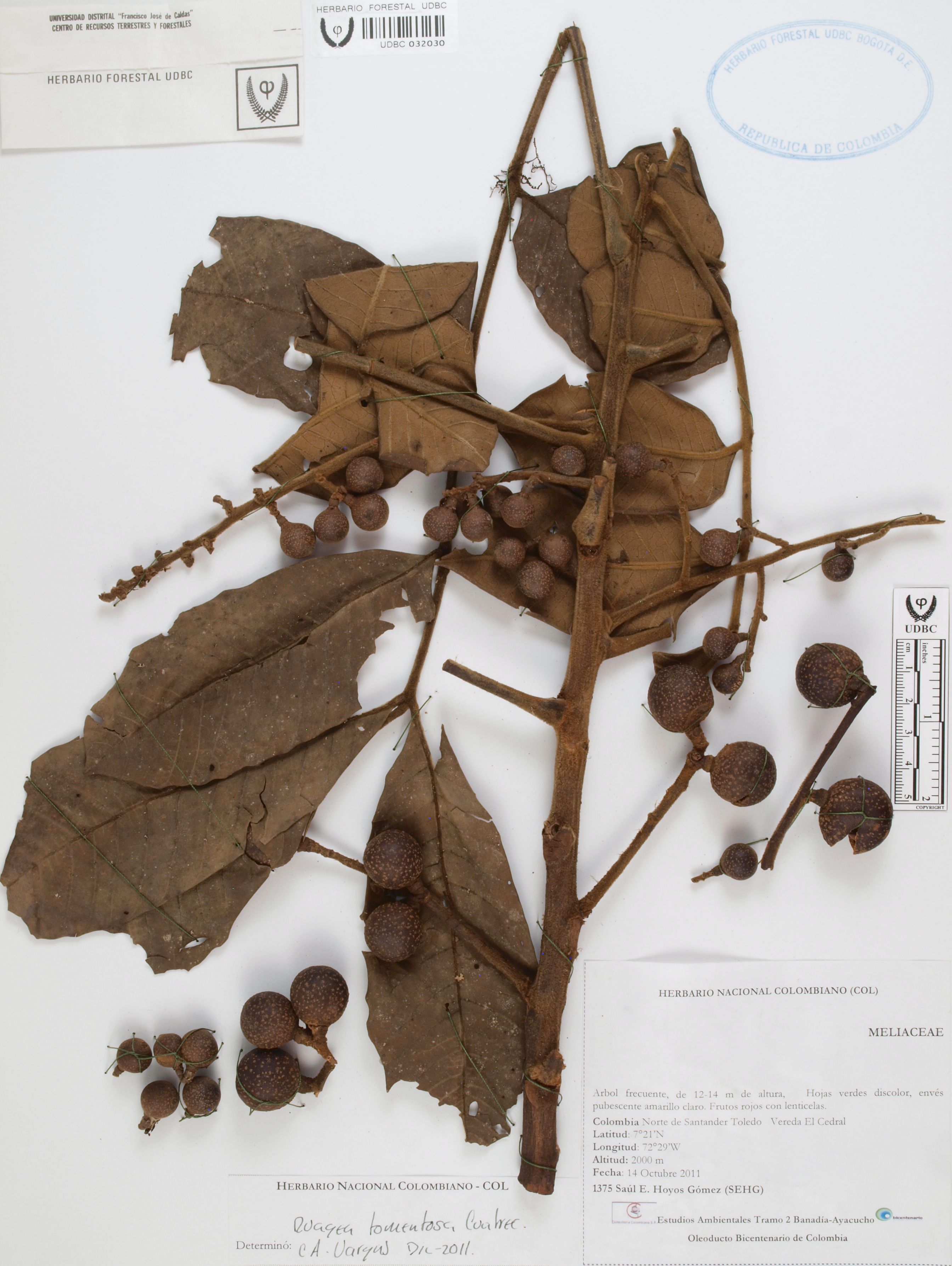 Fotografía del ejemplar Hoyos, S. 1375, determinado como Ruagea tomentosa en el año 2011
