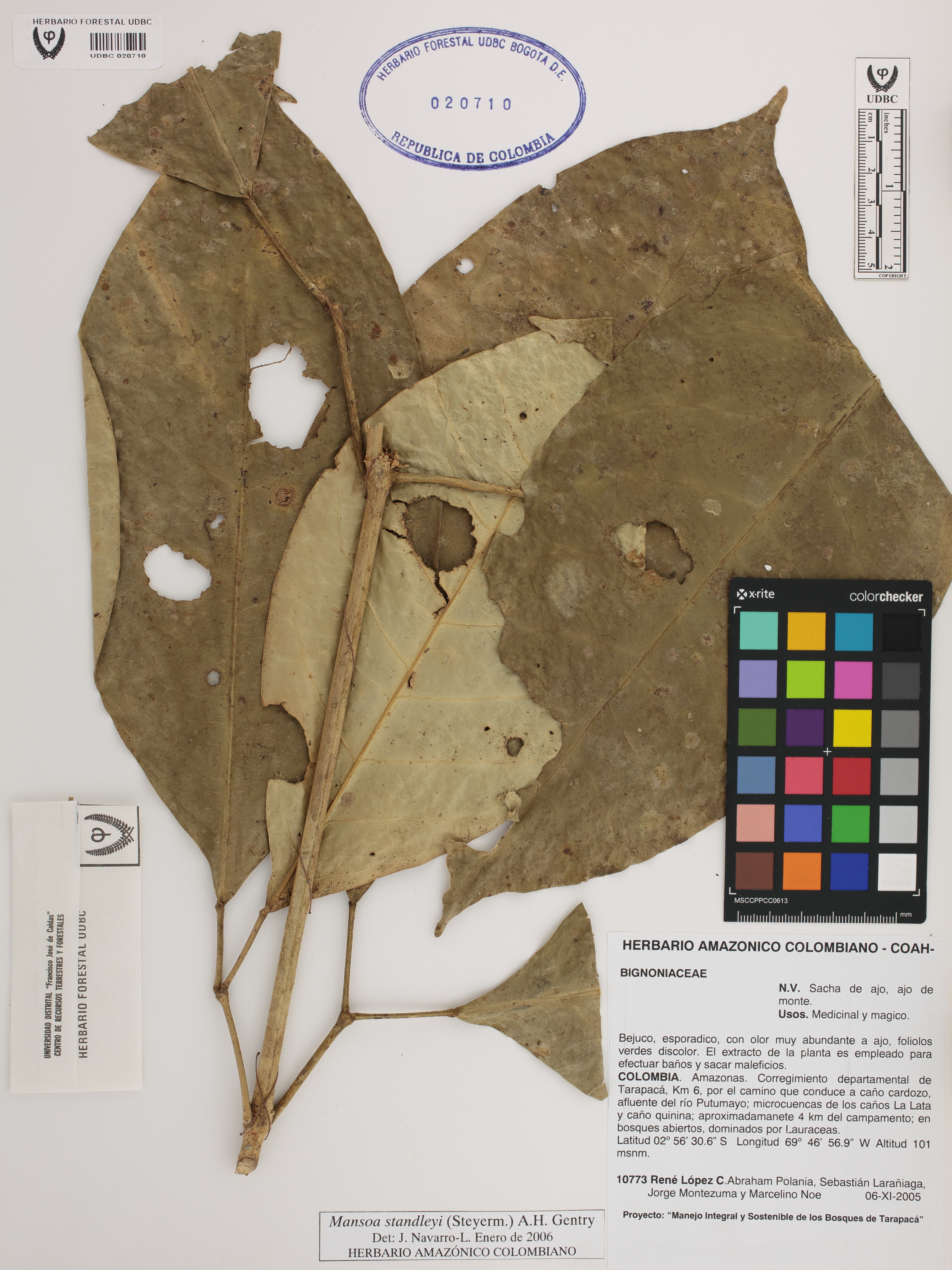 Fotografía del ejemplar López, R. 10773, determinado como Mansoa standleyi en el año 2006
