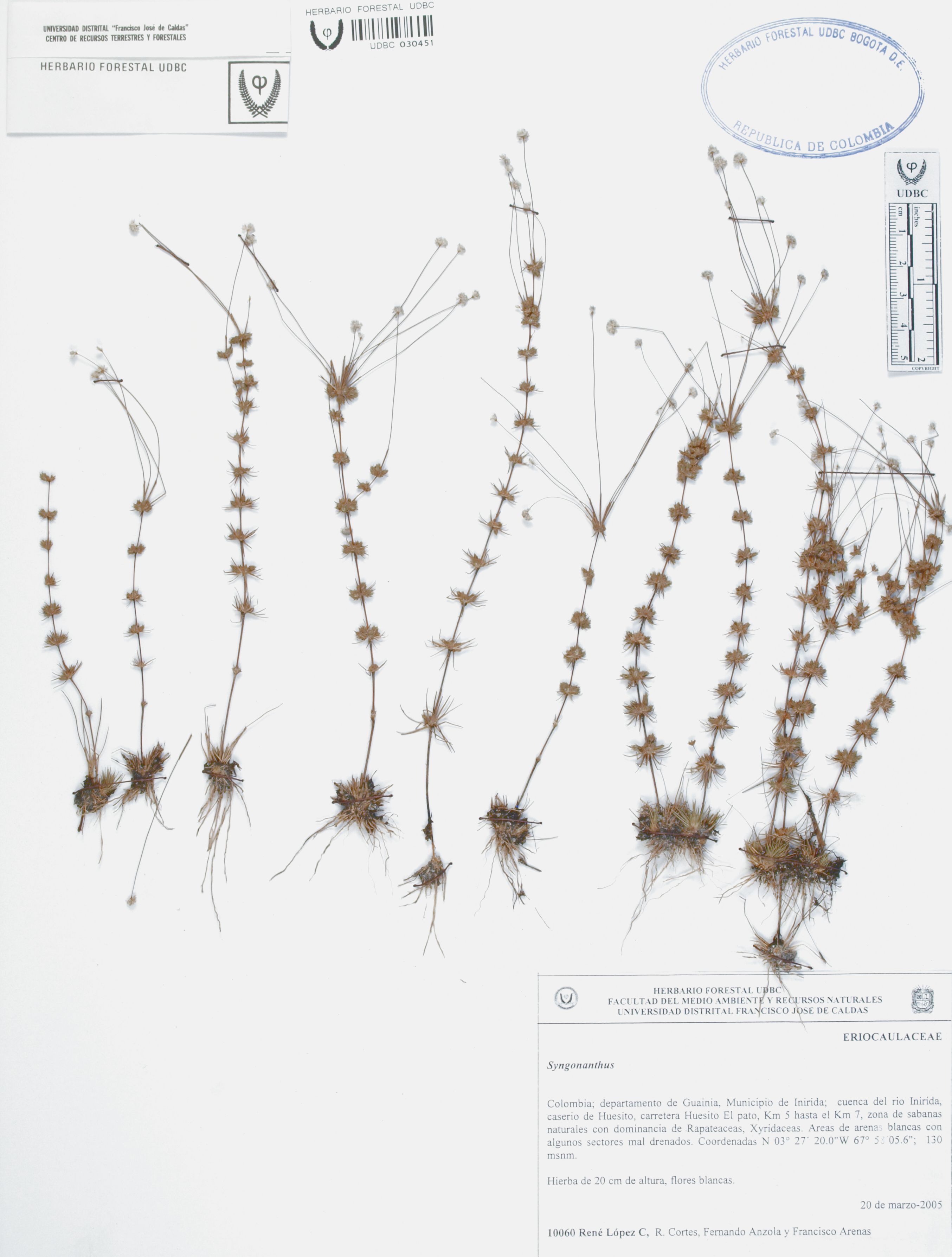 Fotografía del ejemplar López, R. 10060, determinado como Syngonanthus sp.