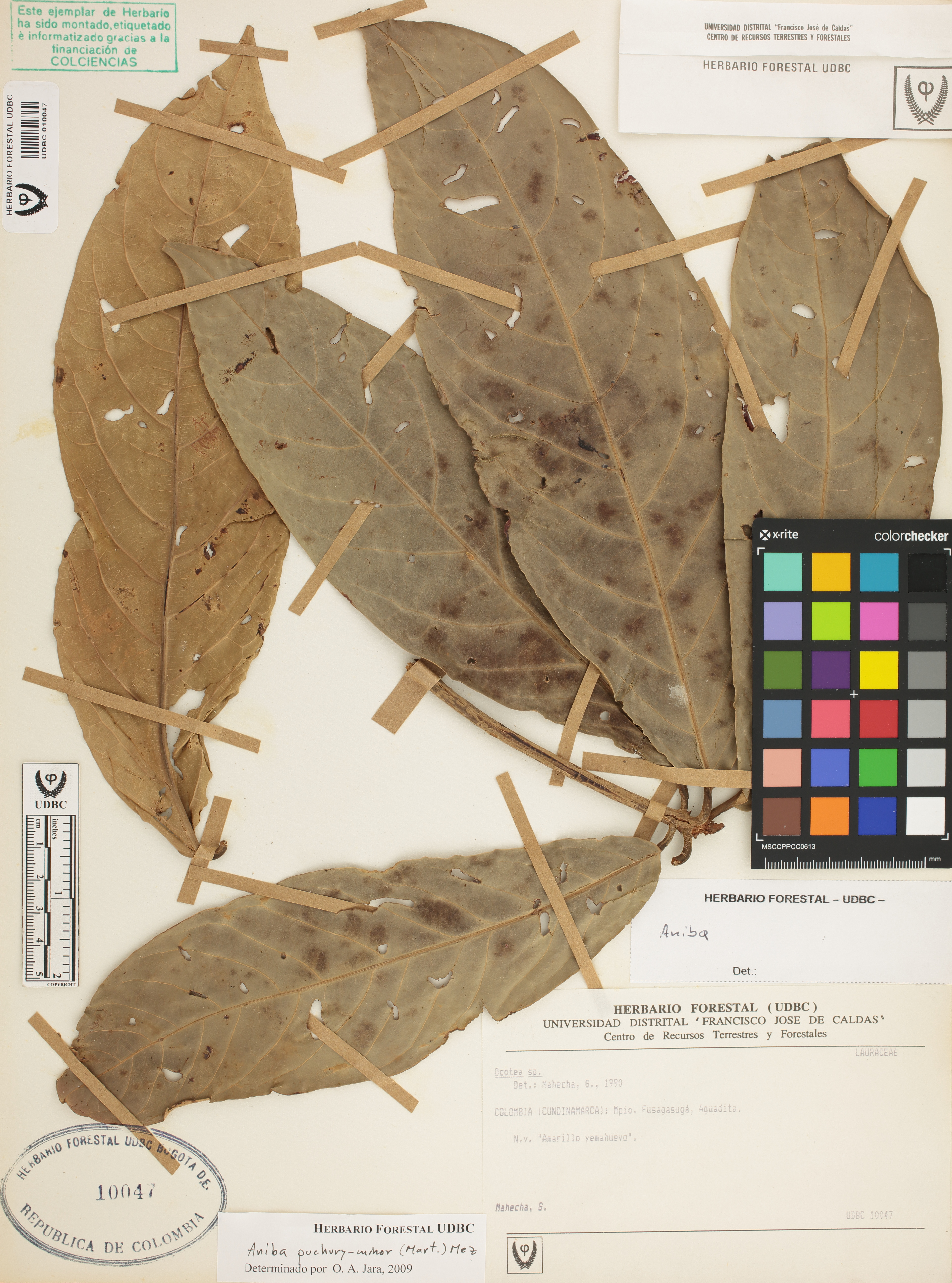 Fotografía del ejemplar Mahecha, G., determinado como Aniba puchury-minor en el año 2009