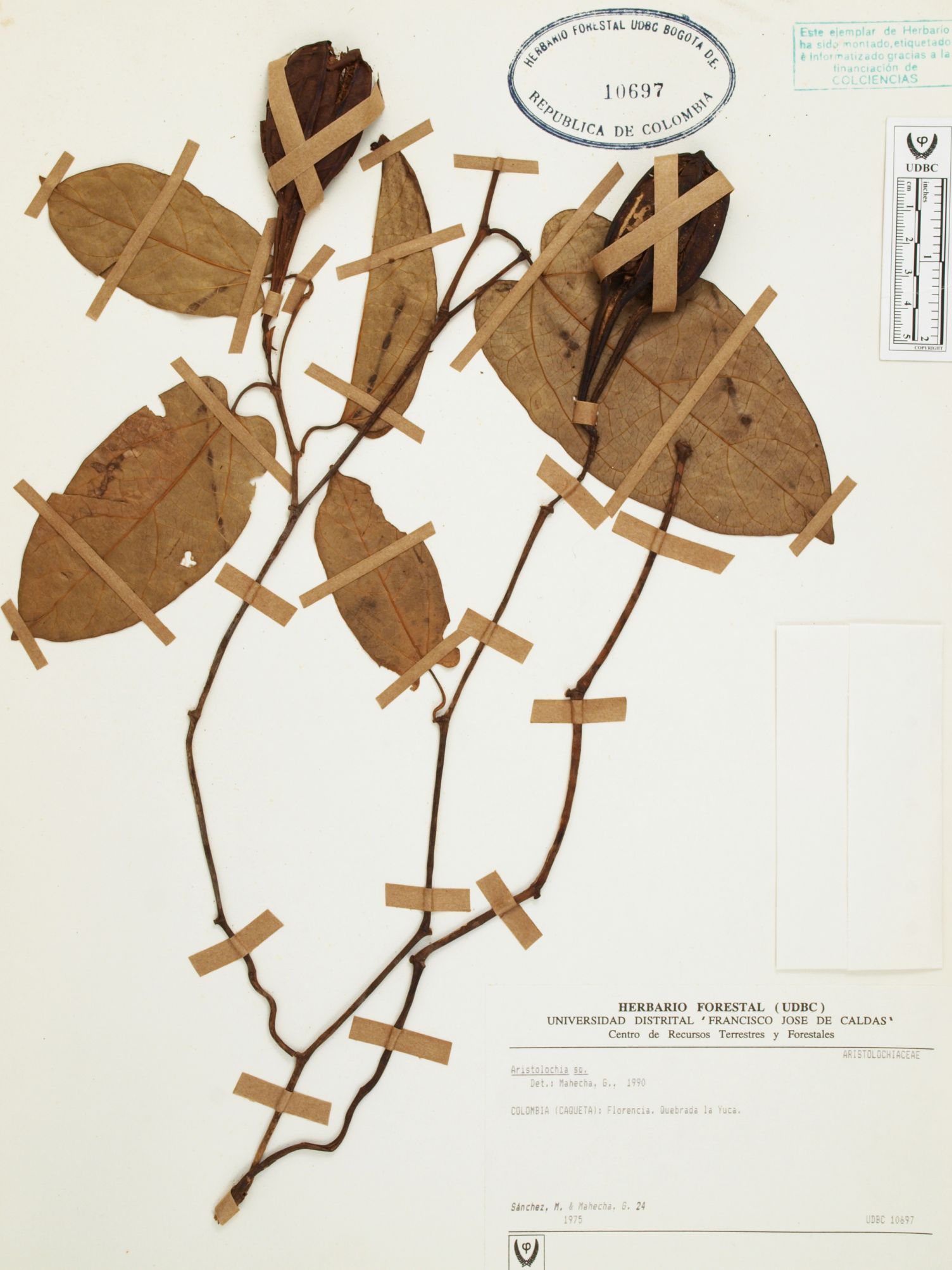 Fotografía del ejemplar Sánchez, M. 24, determinado como Aristolochia sp. en el año 1990