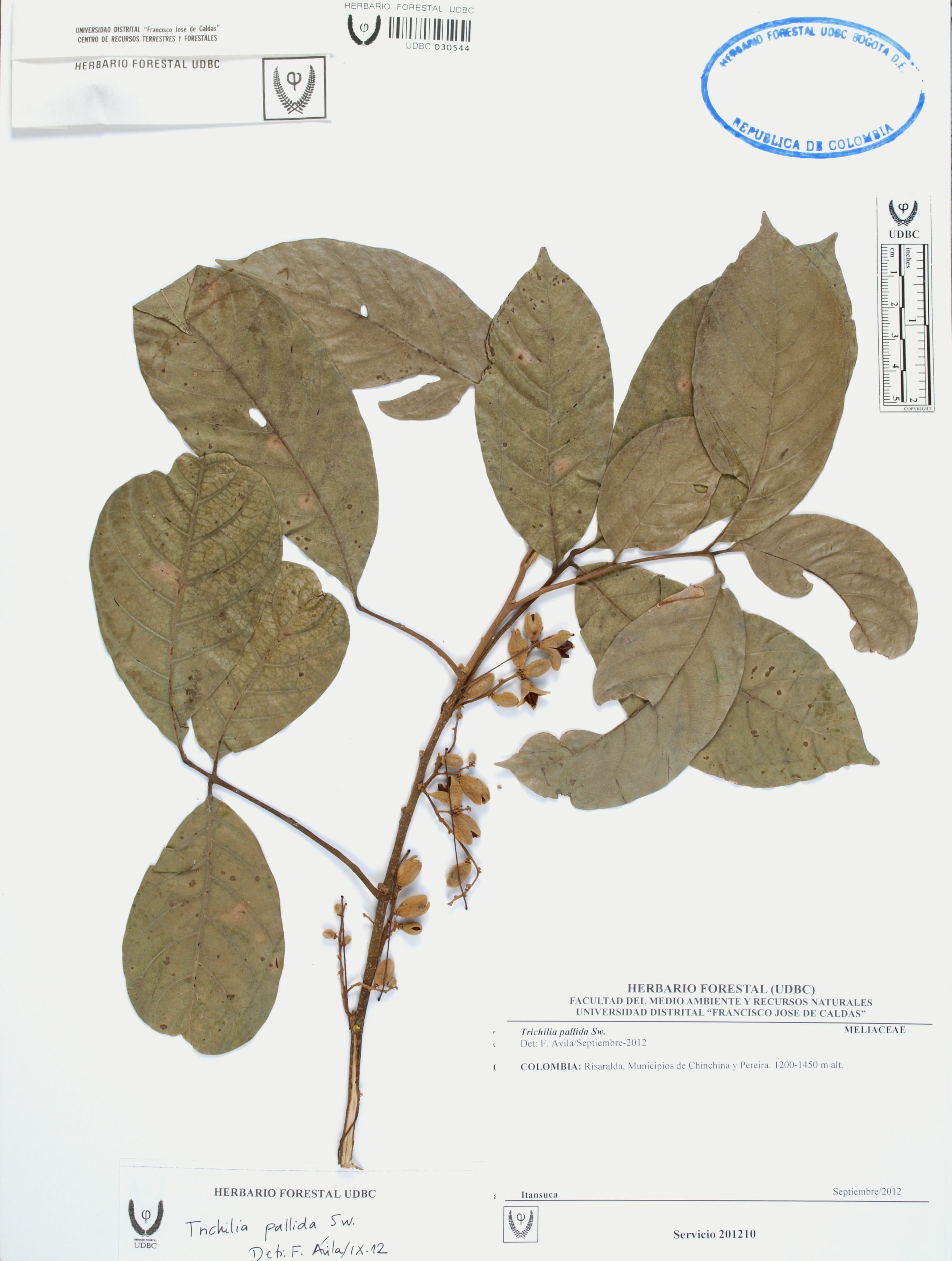 Fotografía del ejemplar SD, determinado como Trichilia pallida en el año 2012