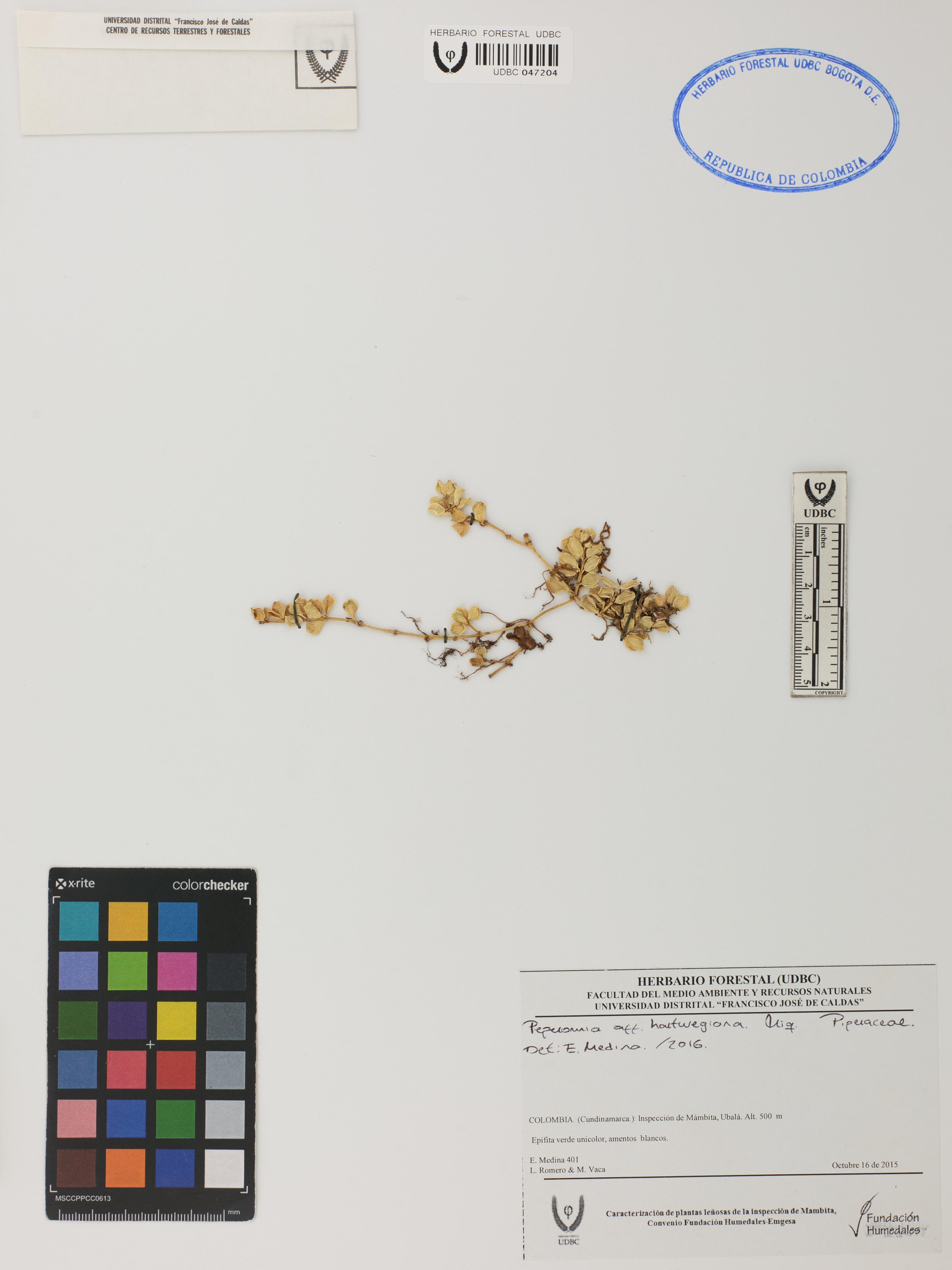 Fotografía del ejemplar Romero, L. 401, determinado como Peperomia hartwegiana en el año 2016
