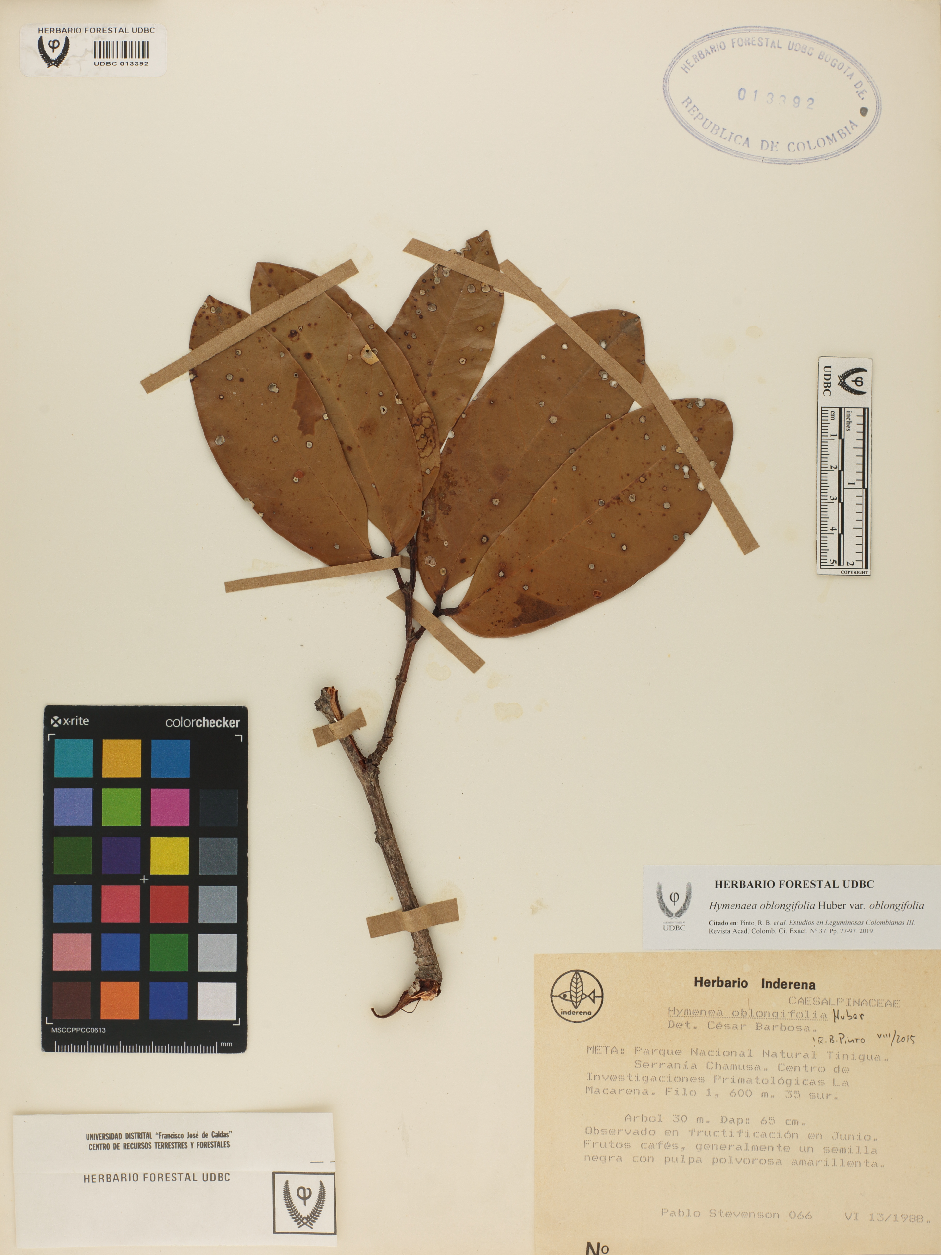 Fotografía del ejemplar Stevenson, P. 66, determinado como Hymenaea oblongifolia var. oblongifolia