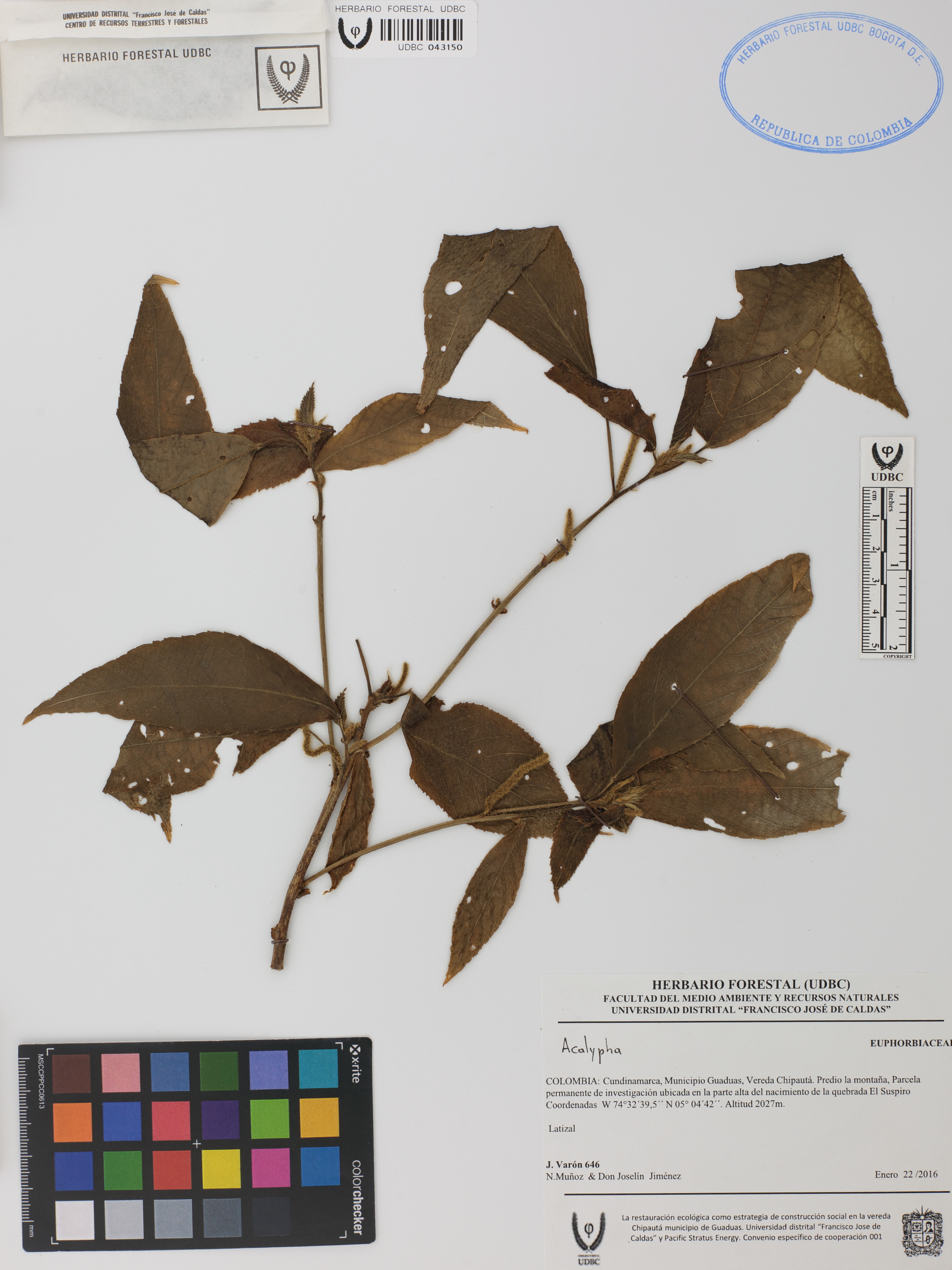 Fotografía del ejemplar Varón, J. 646, determinado como Acalypha sp.