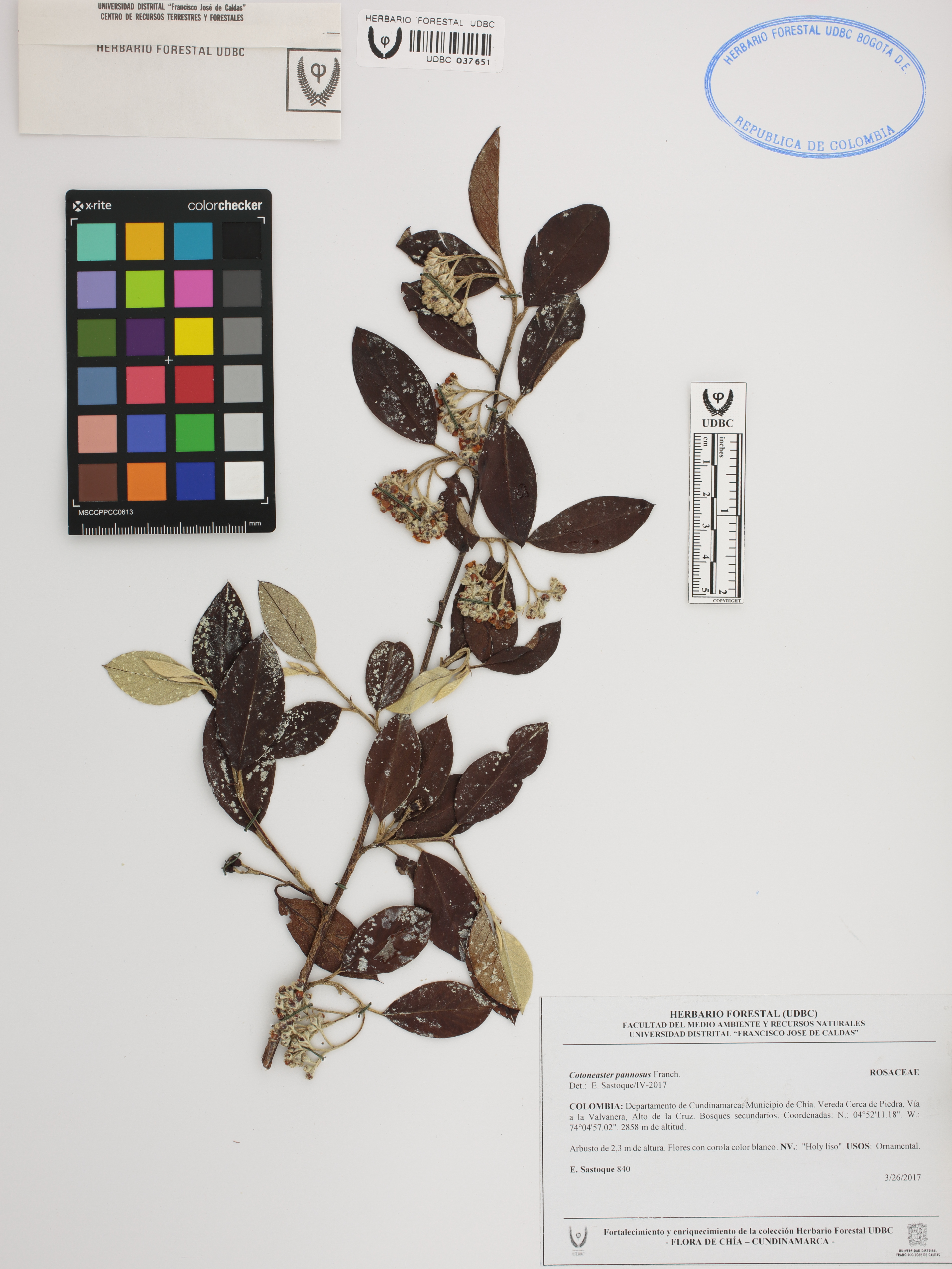 Fotografía del ejemplar Sastoque, E., determinado como Cotoneaster pannosus en el año 2017