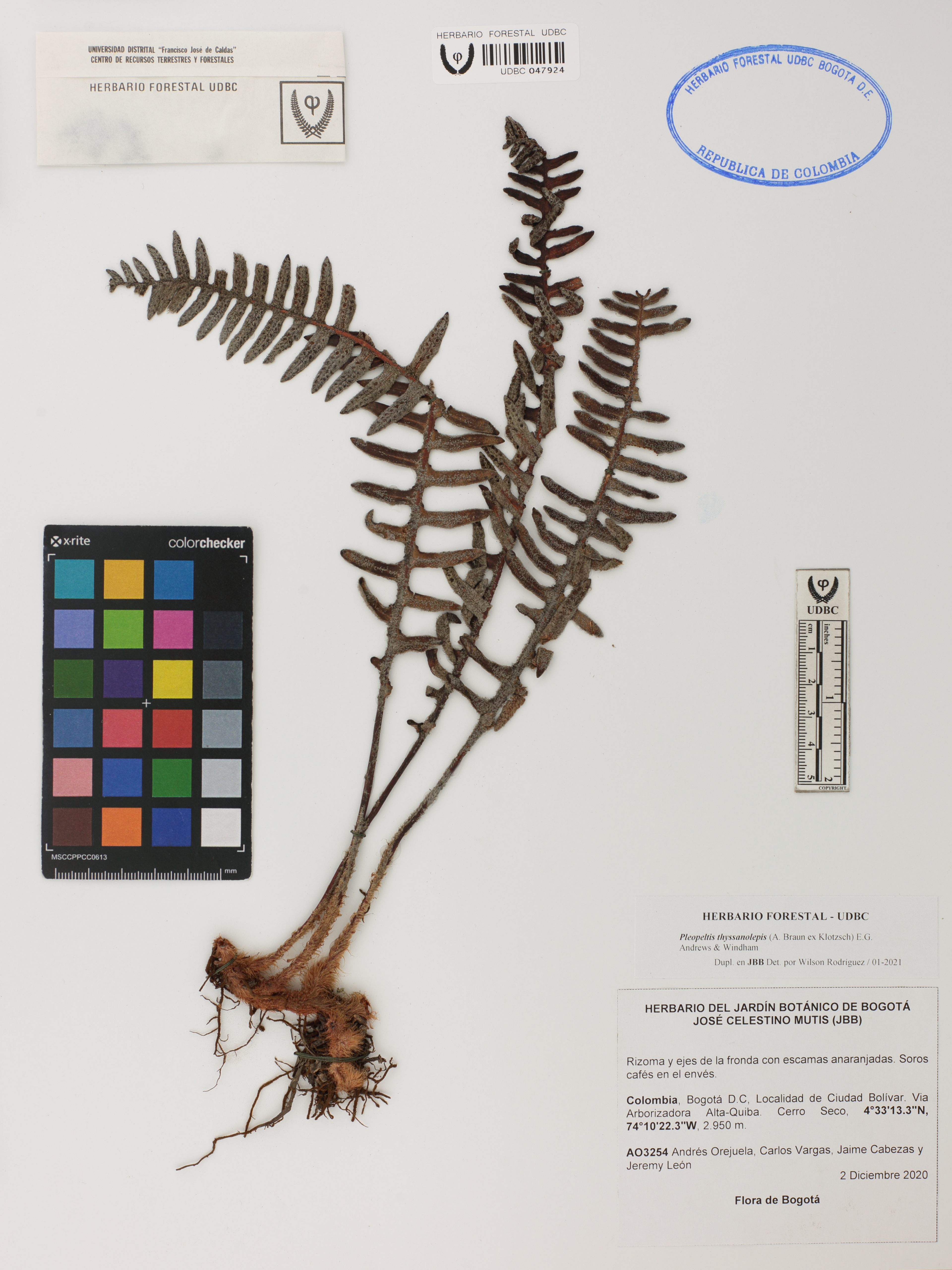 Fotografía del ejemplar Orejuela, A. 3254, determinado como Pleopeltis thyssanolepis en el año 2021
