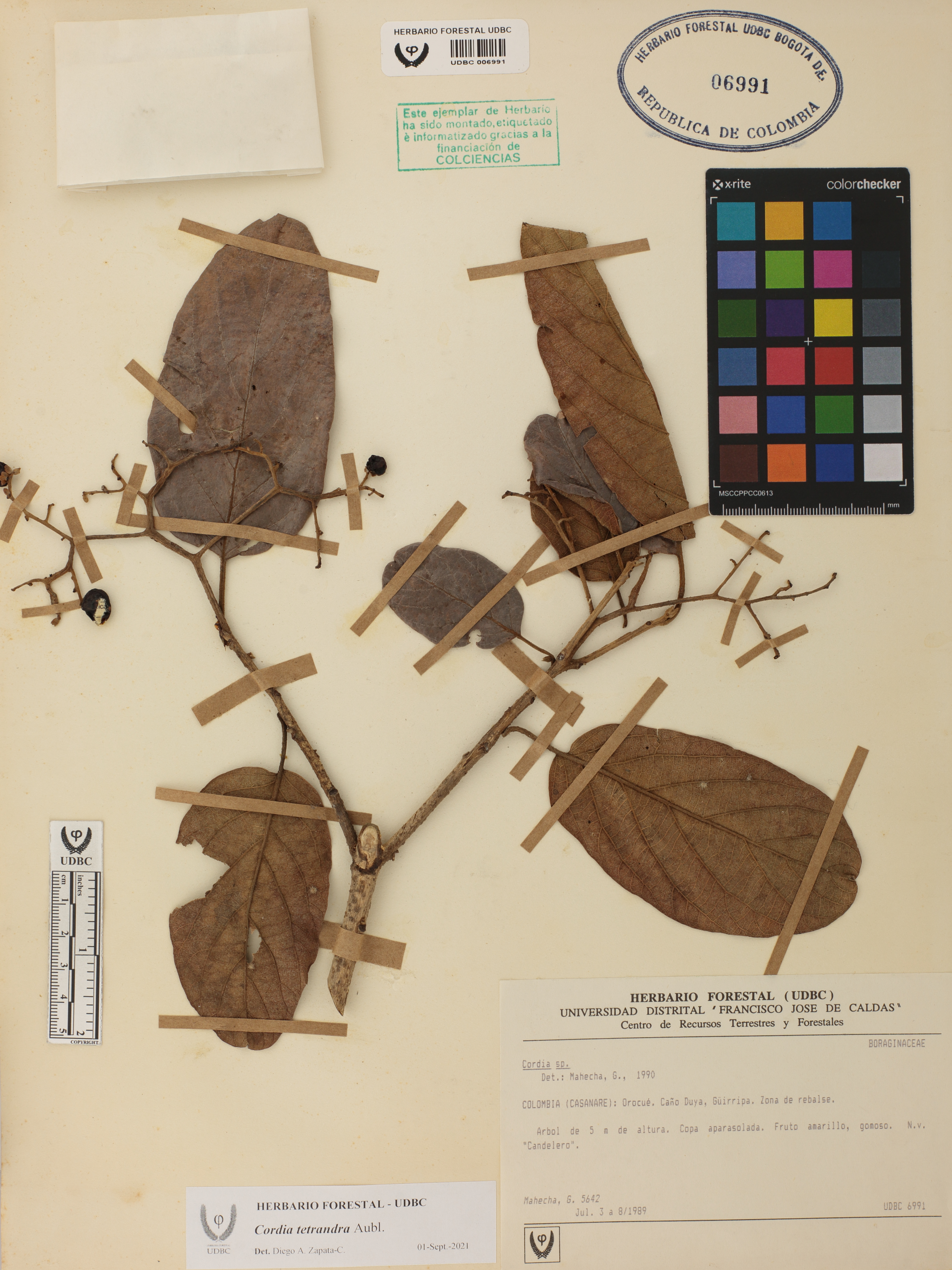 Fotografía del ejemplar Mahecha, G. 5642, determinado como Cordia tetrandra en el año 2021