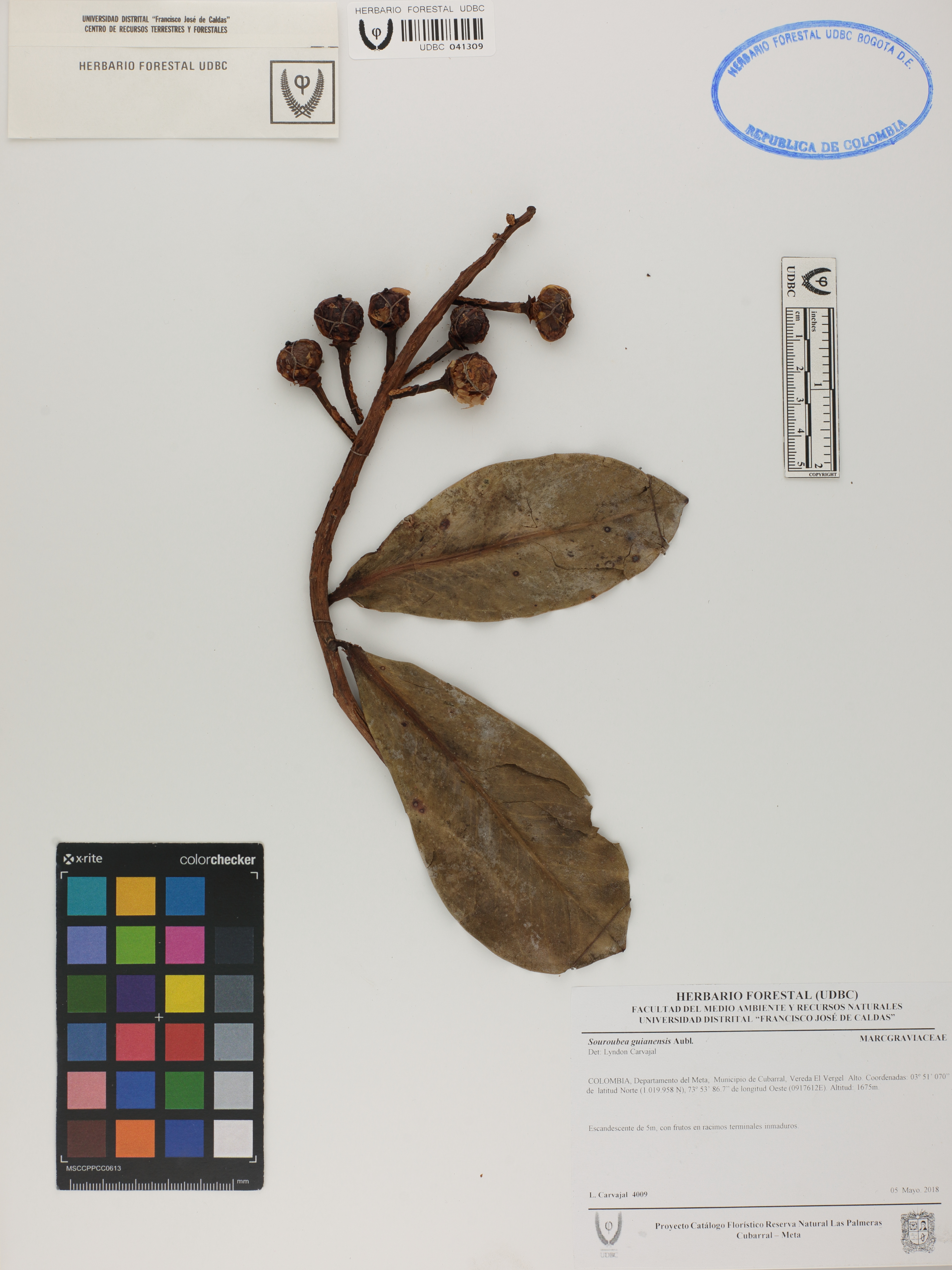 Fotografía del ejemplar Carvajal, L. 4009, determinado como Souroubea guianensis