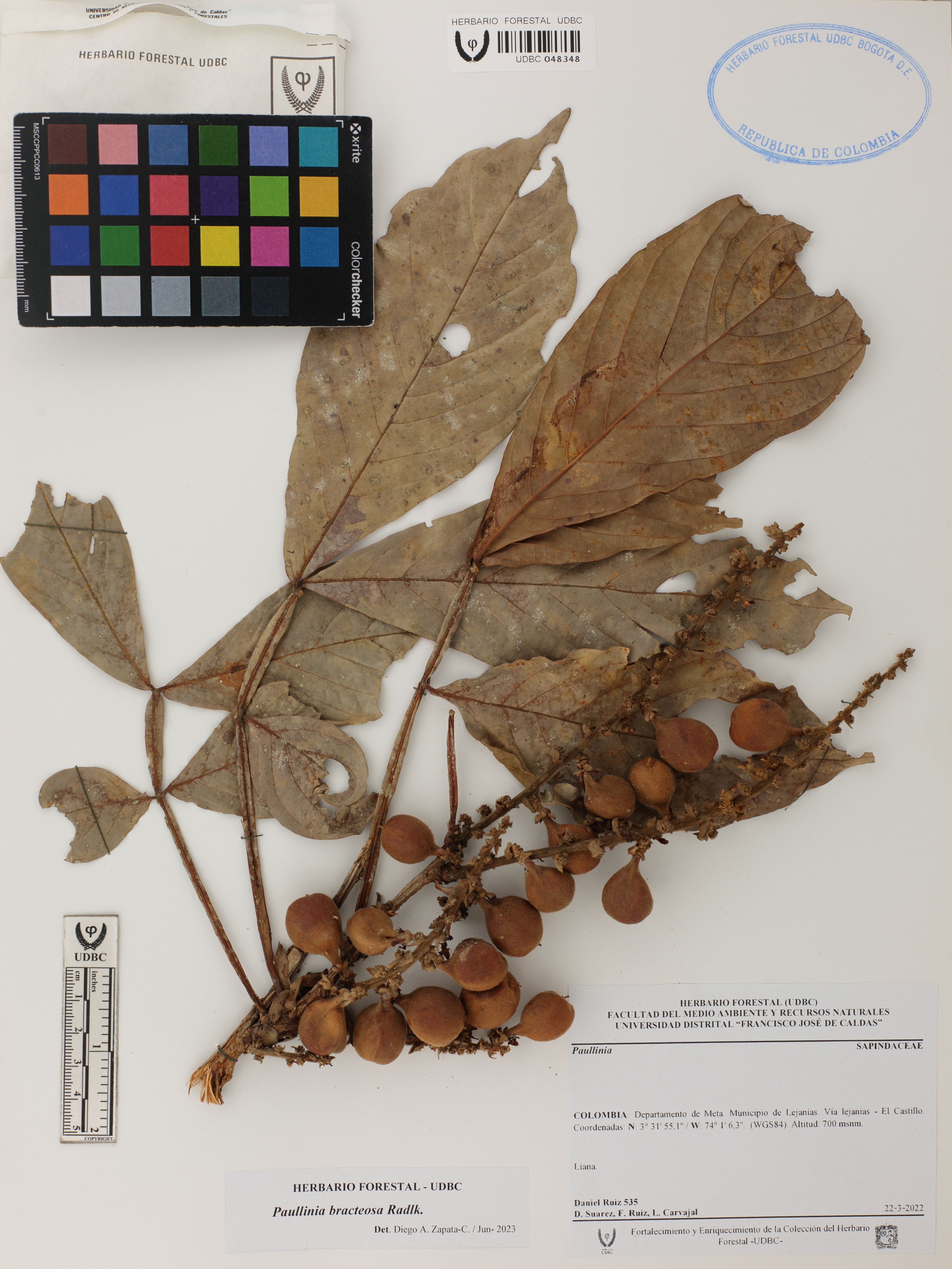 Fotografía del ejemplar Ruiz, Daniel 535, determinado como Paullinia bracteosa en el año 2023