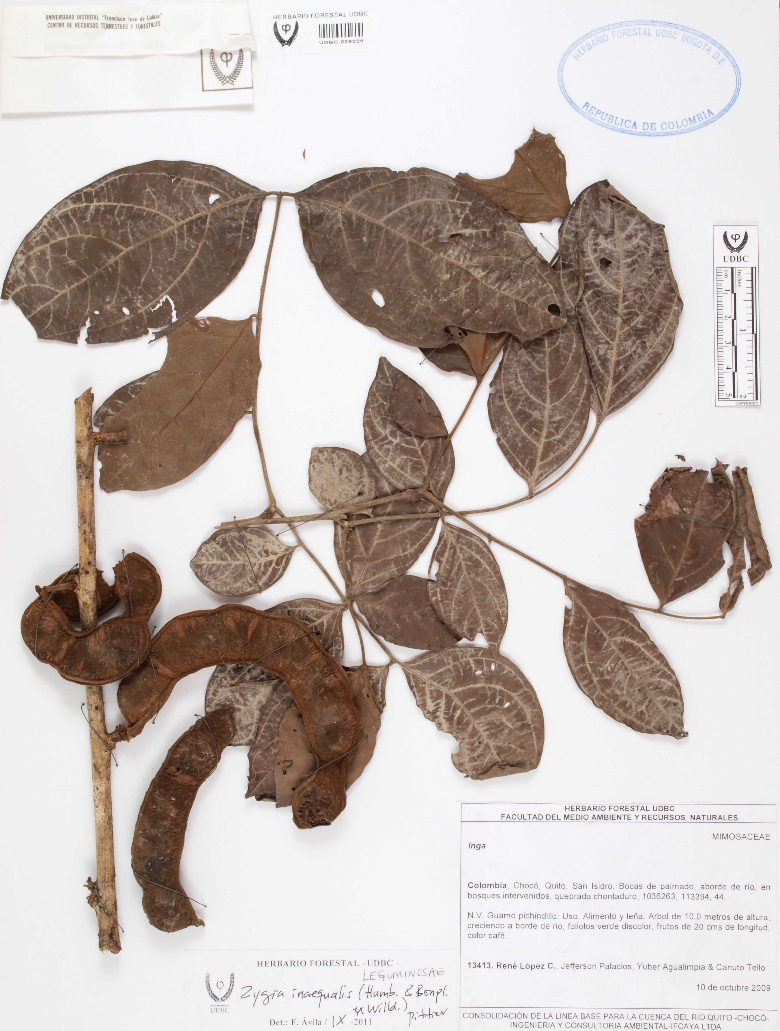 Fotografía del ejemplar López, R. 13413, determinado como Zygia inaequalis en el año 2011