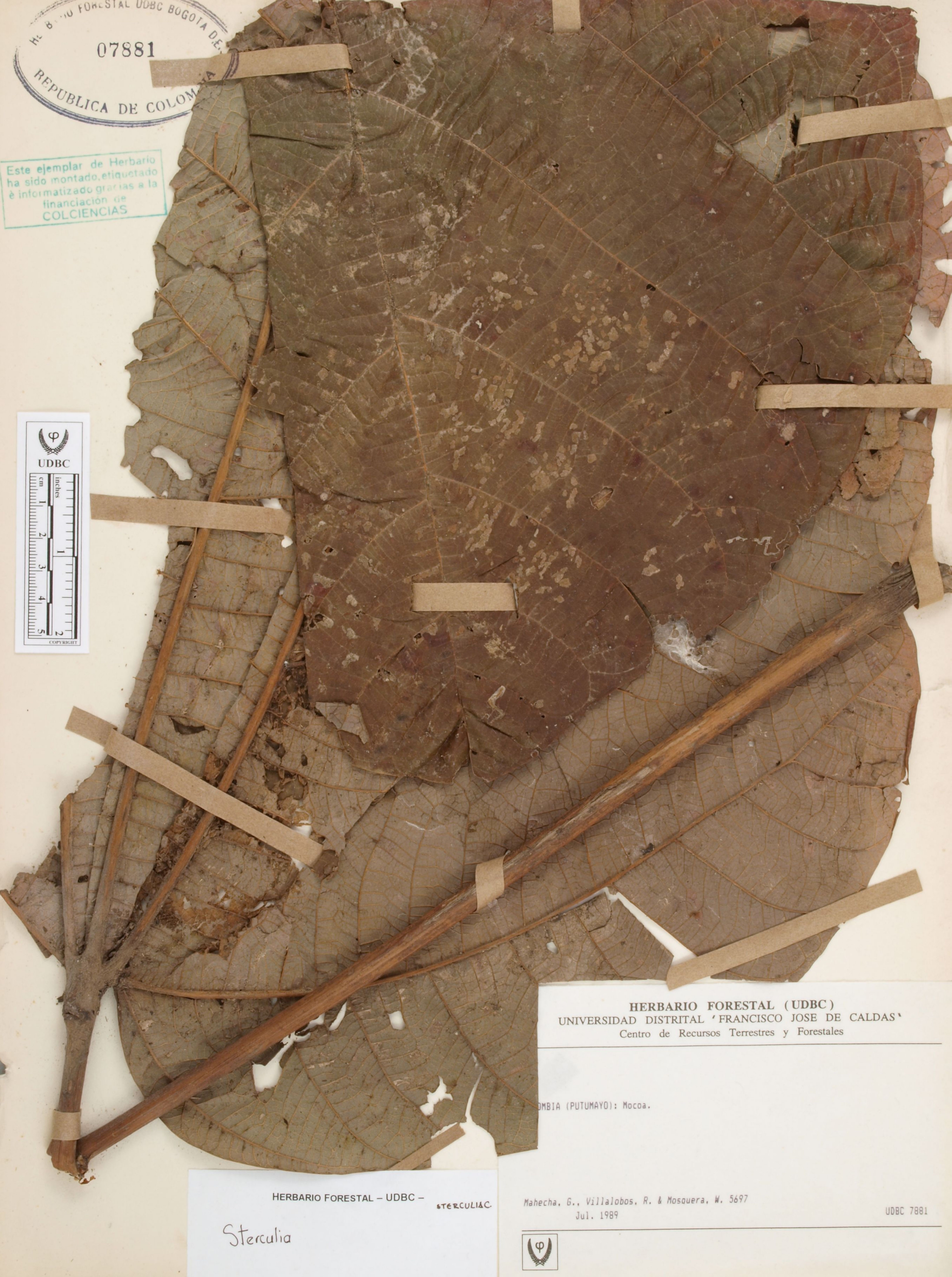 Fotografía del ejemplar Mahecha, G. 5697, determinado como Sterculia sp.