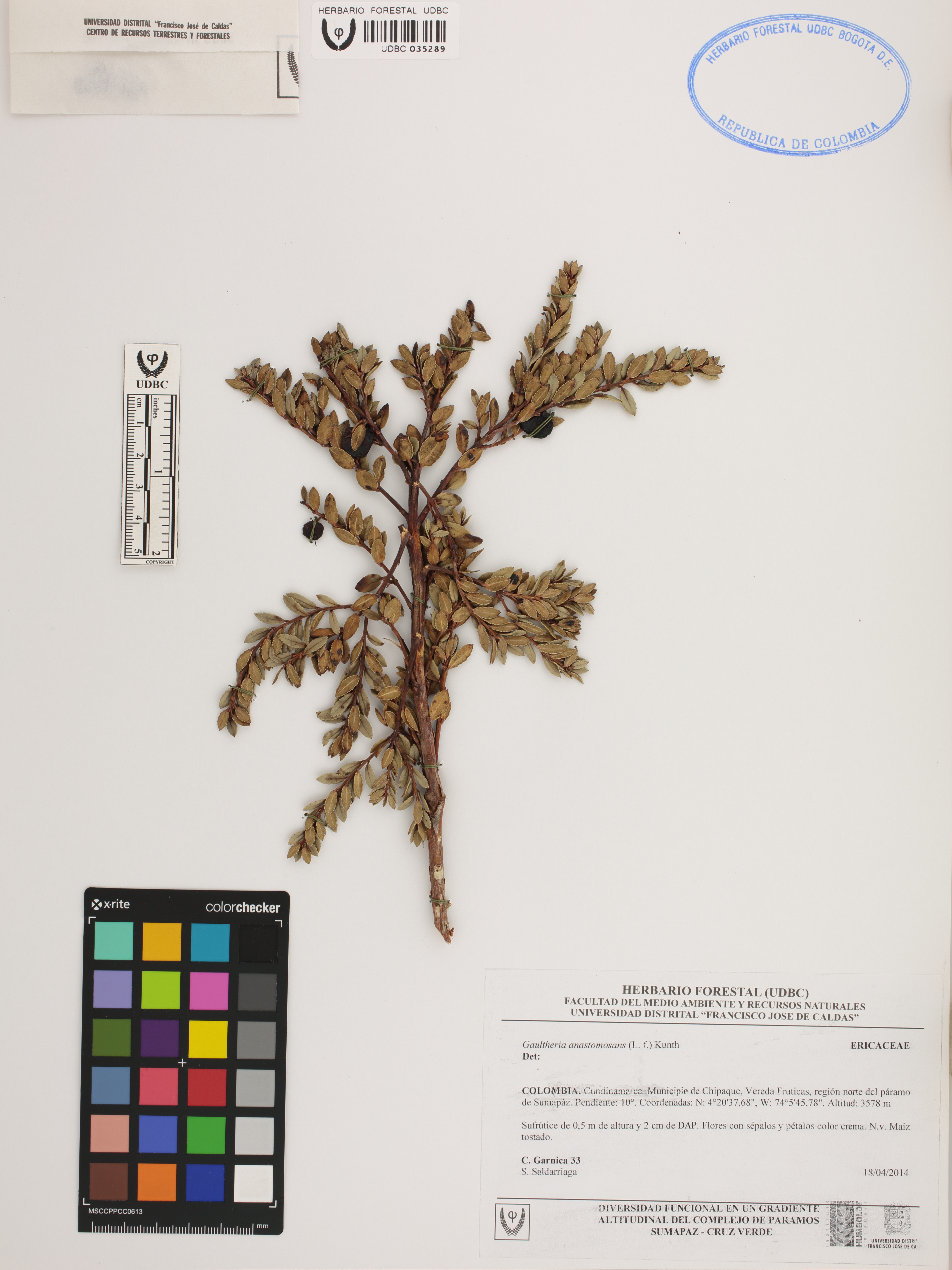 Fotografía del ejemplar Garnica, C. 33, determinado como Pernettya prostrata en el año 2017