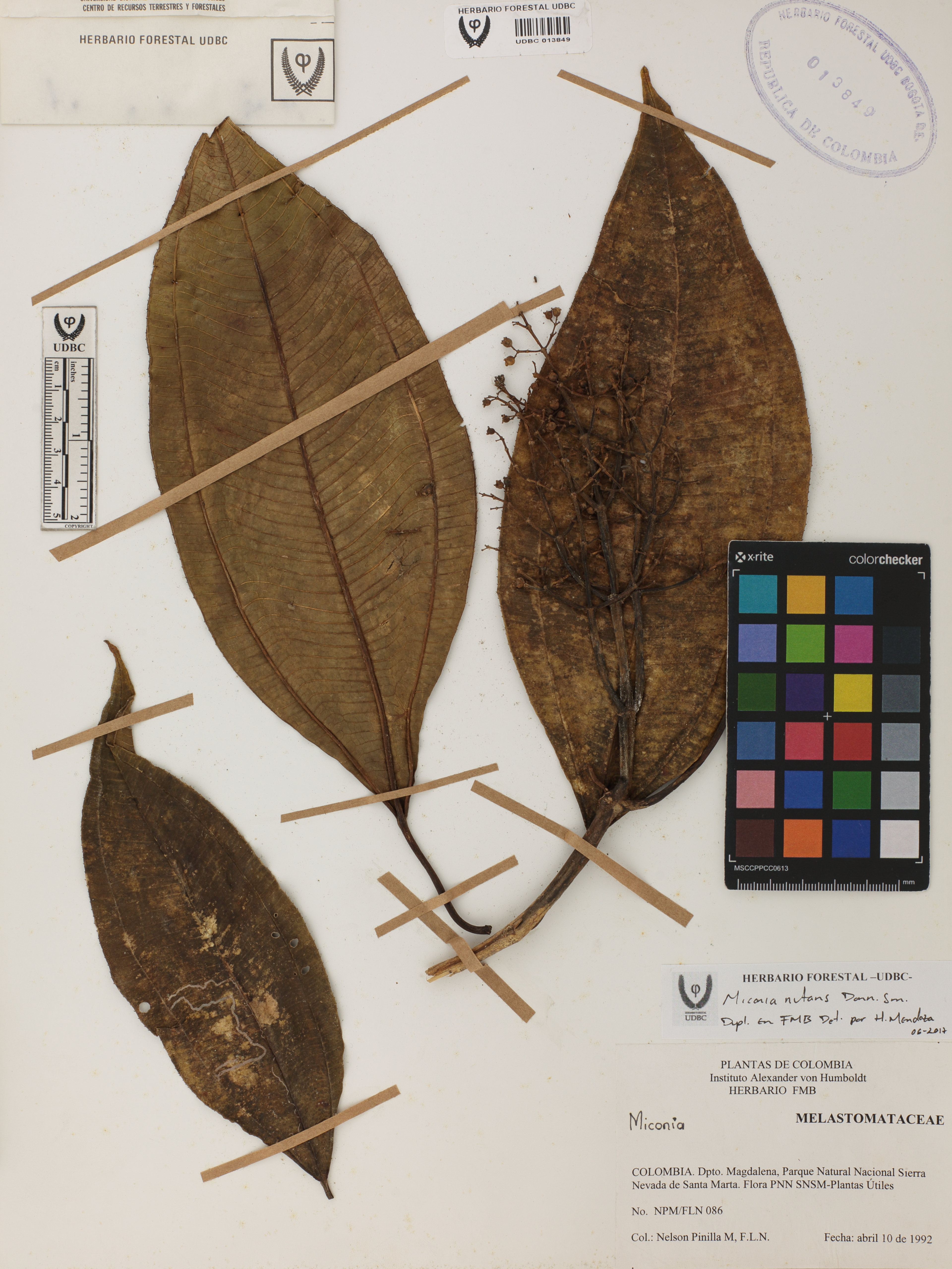 Fotografía del ejemplar Pinilla, N. 86, determinado como Miconia nutans en el año 2017