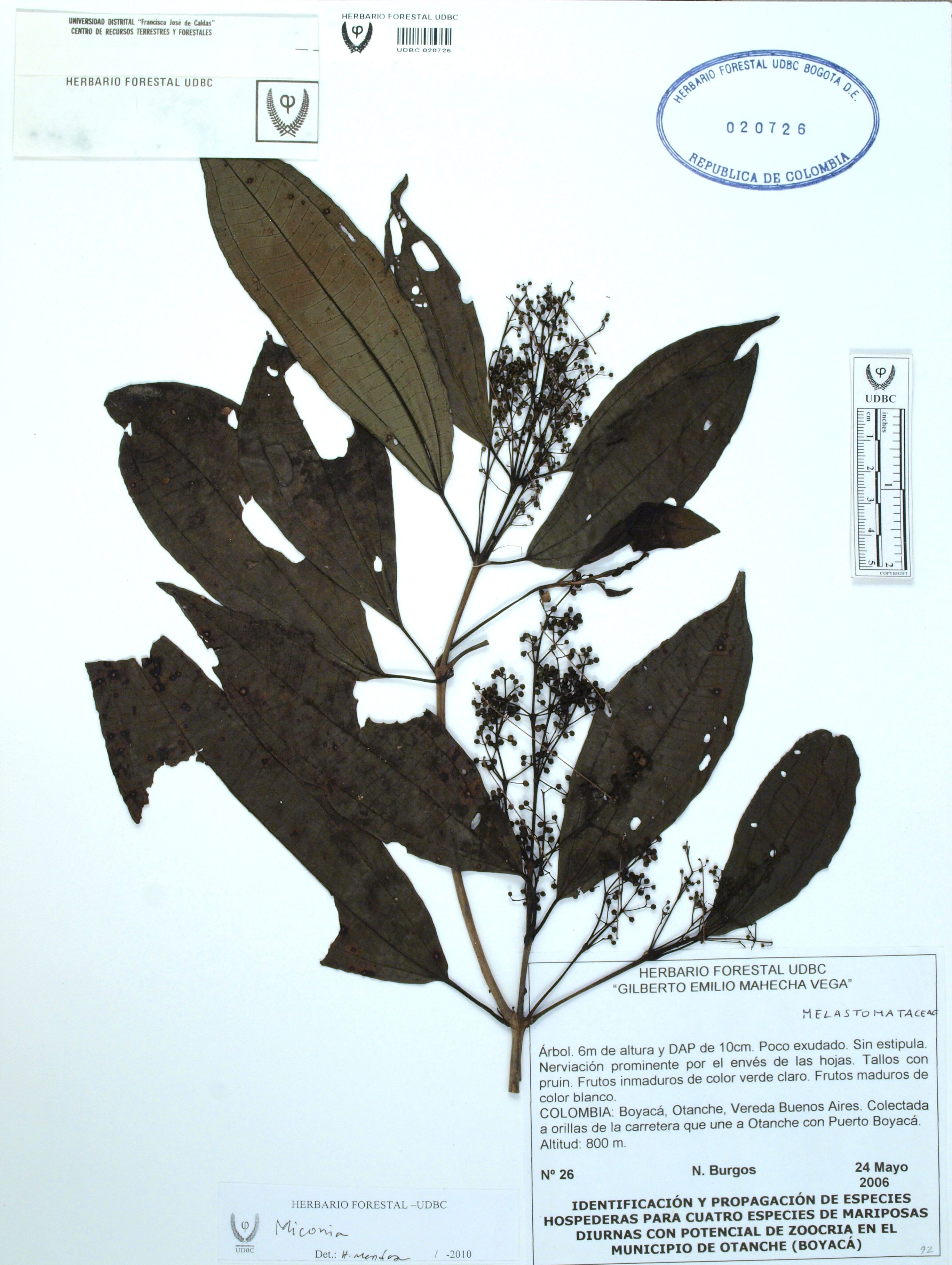 Fotografía del ejemplar Burgos, N. 26, determinado como Miconia sp. en el año 2010