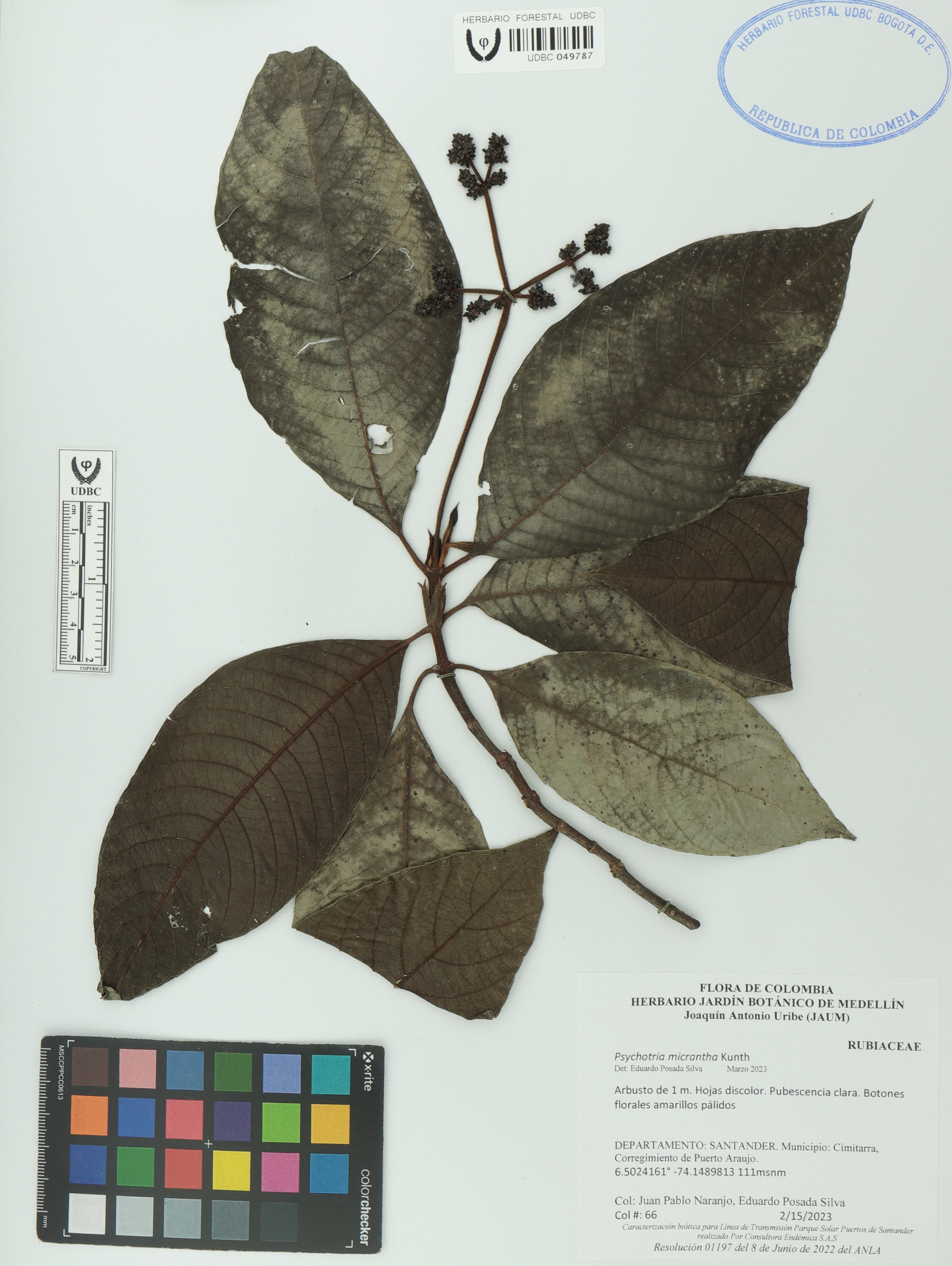 Fotografía del ejemplar Naranjo, J. 66, determinado como Psychotria micrantha en el año 2023