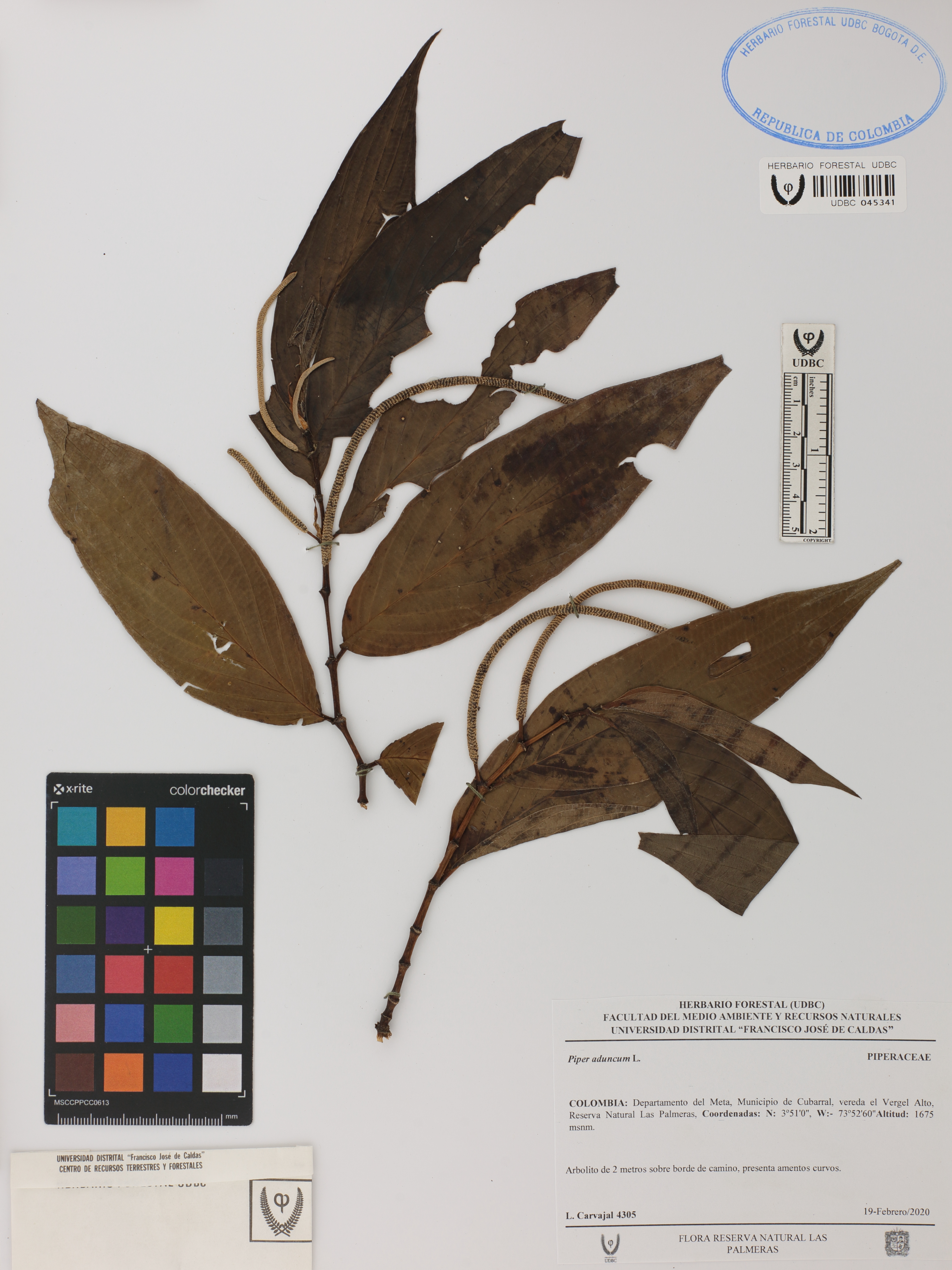 | dc.description | Fotografía del ejemplar Carvajal, L. 4305, determinado como Piper aduncum en el año 2020 | |