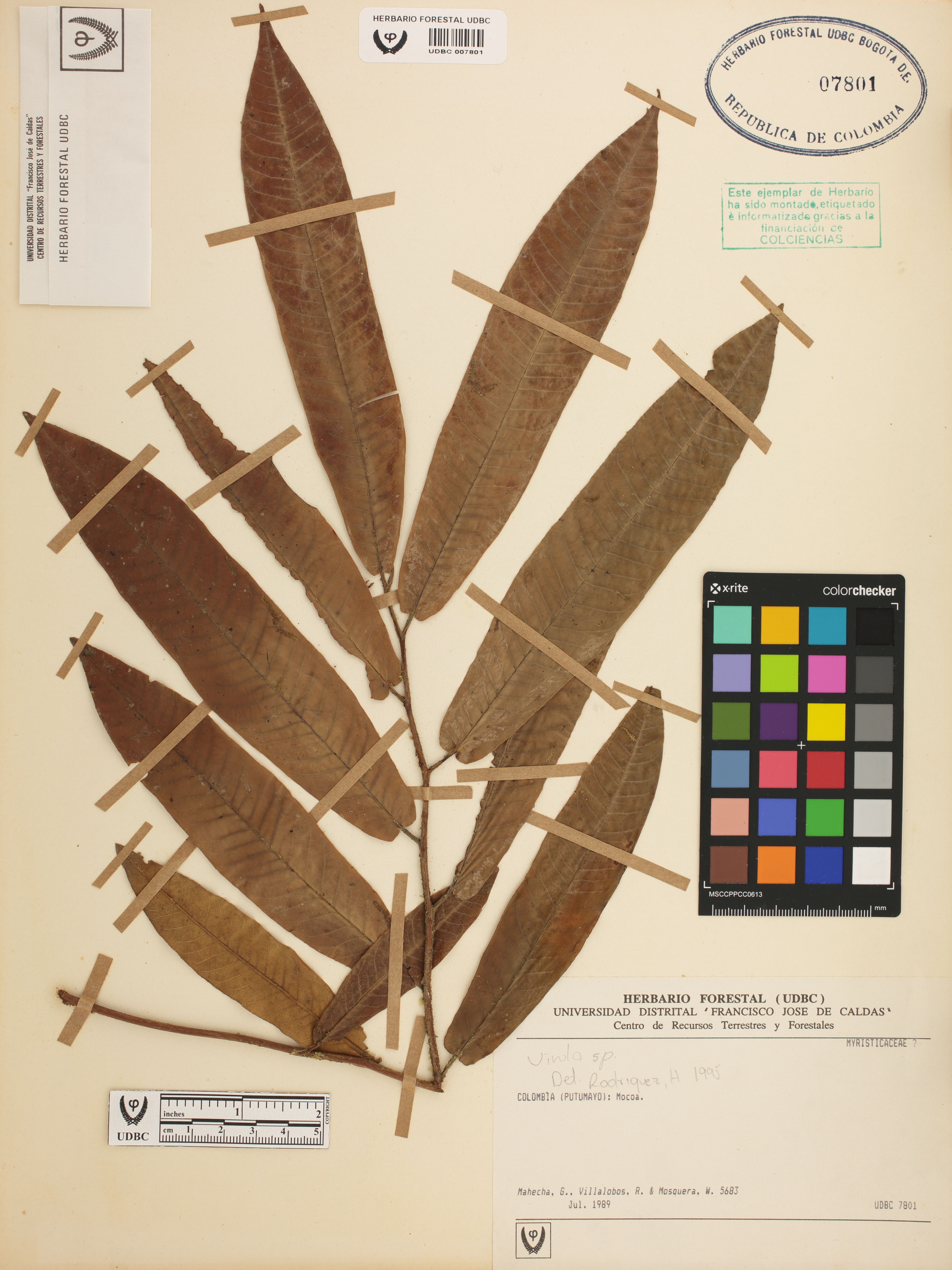 Fotografía del ejemplar Mahecha, G. 5683, determinado como Virola flexuosa en el año 2022
