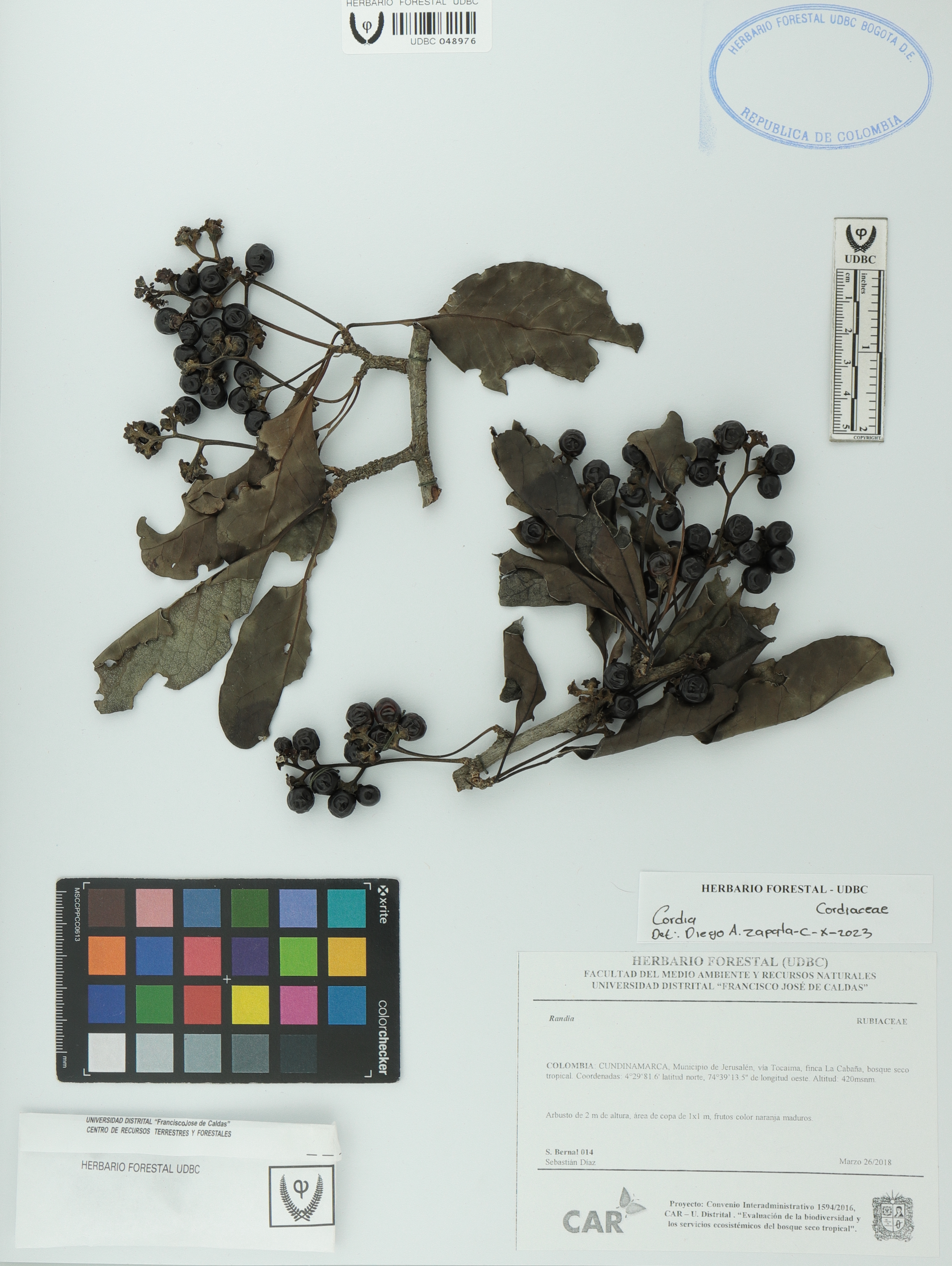 Fotografía del ejemplar Bernal, S. 14, determinado como Cordia sp. en el año 2023
